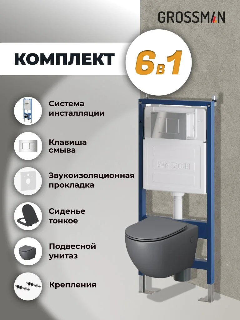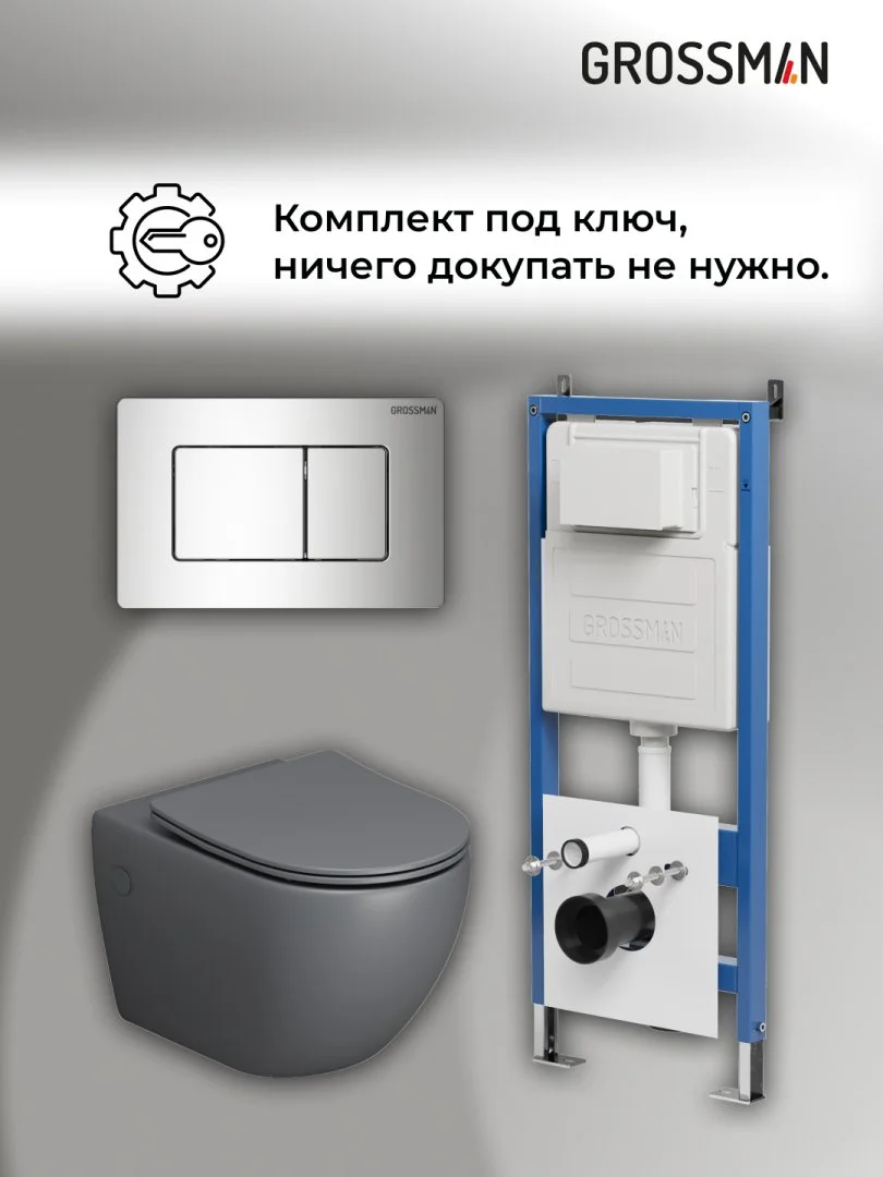 Комплект инсталляции GROSSMAN 900.K31.01.000 с клавишей смыва 700.K31.04.10M.10M хром и унитазом GROSSMAN GR-4411GMS арт.97.4411GMS.04.10M