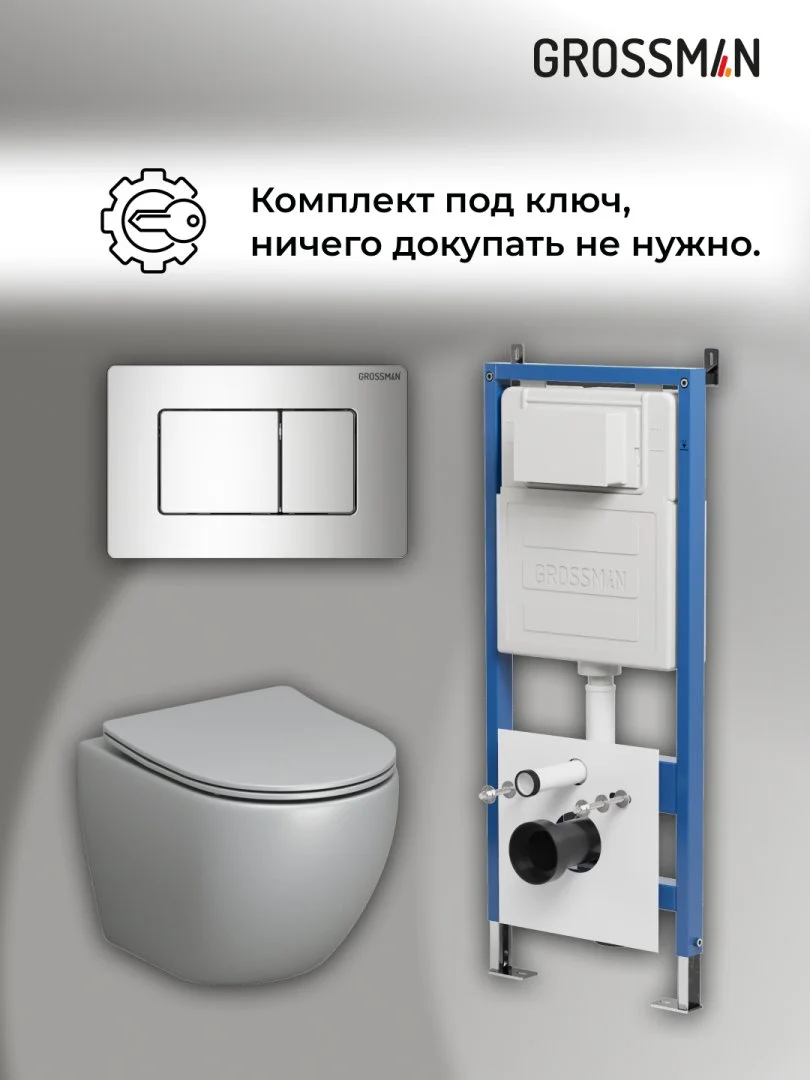 Комплект инсталляции GROSSMAN 900.K31.01.000 с клавишей смыва 700.K31.04.10M.10M хром и унитазом GROSSMAN GR-4455GLMS арт.97.4455GLMS.04.10M