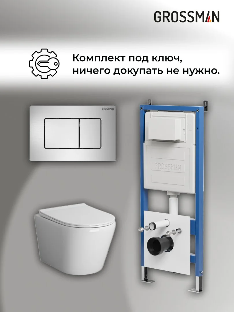 Комплект инсталляции GROSSMAN 900.K31.01.000 с клавишей смыва 700.K31.04.12M.12M хром сатиновый и унитазом GROSSMAN GR-4478S арт.97.4478S.04.12M