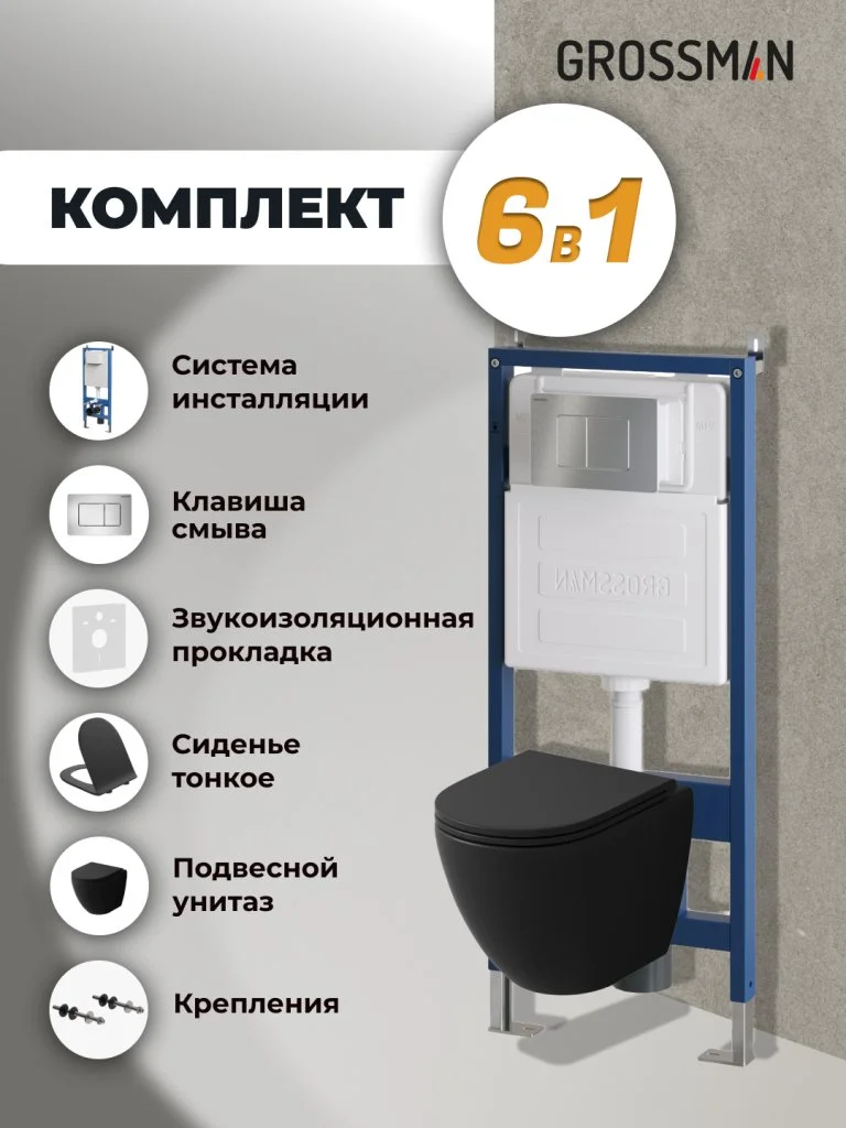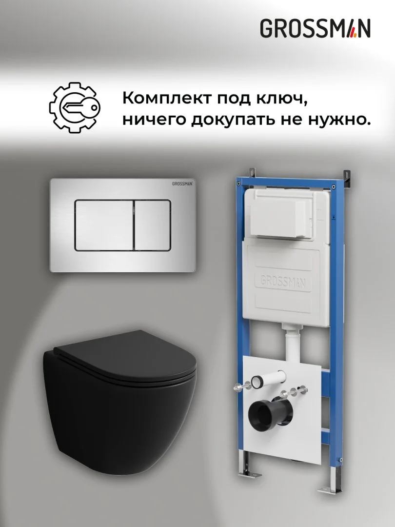 Комплект инсталляции GROSSMAN 900.K31.01.000 с клавишей смыва 700.K31.04.12M.12M хром сатиновый и унитазом GROSSMAN GR-4455BMS арт.97.4455BMS.04.12M
