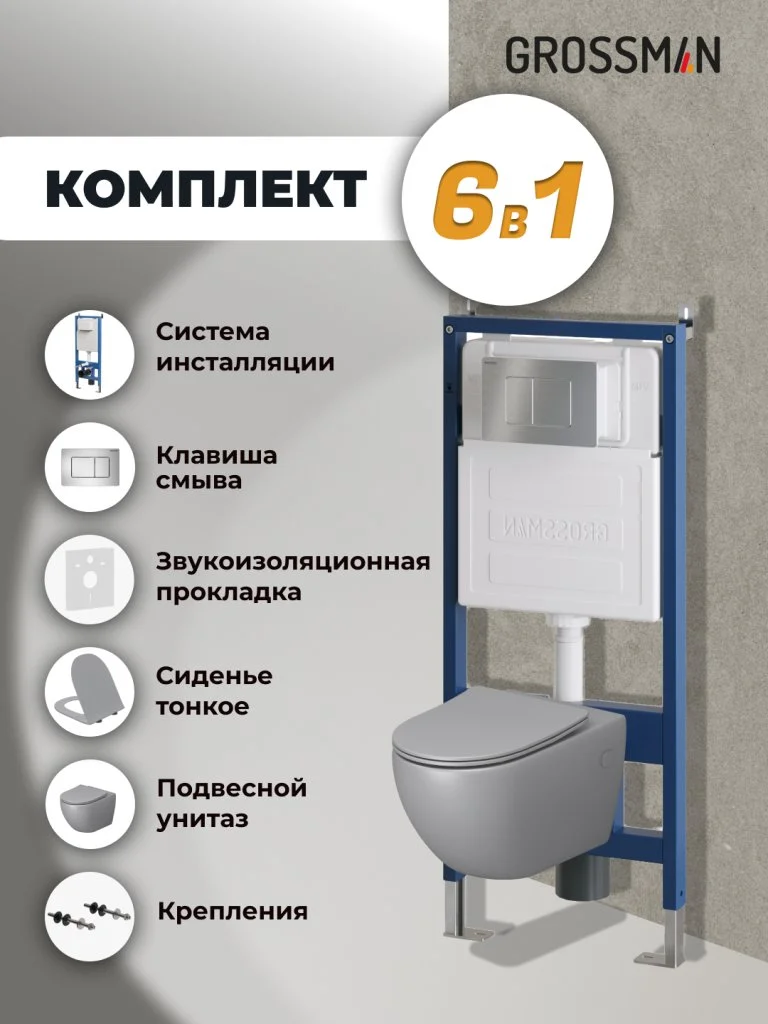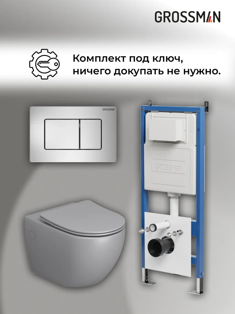 Комплект инсталляции GROSSMAN 900.K31.01.000 с клавишей смыва 700.K31.04.12M.12M хром сатиновый и унитазом GROSSMAN GR-4411GLMS арт.97.4411GLMS.04.12M
