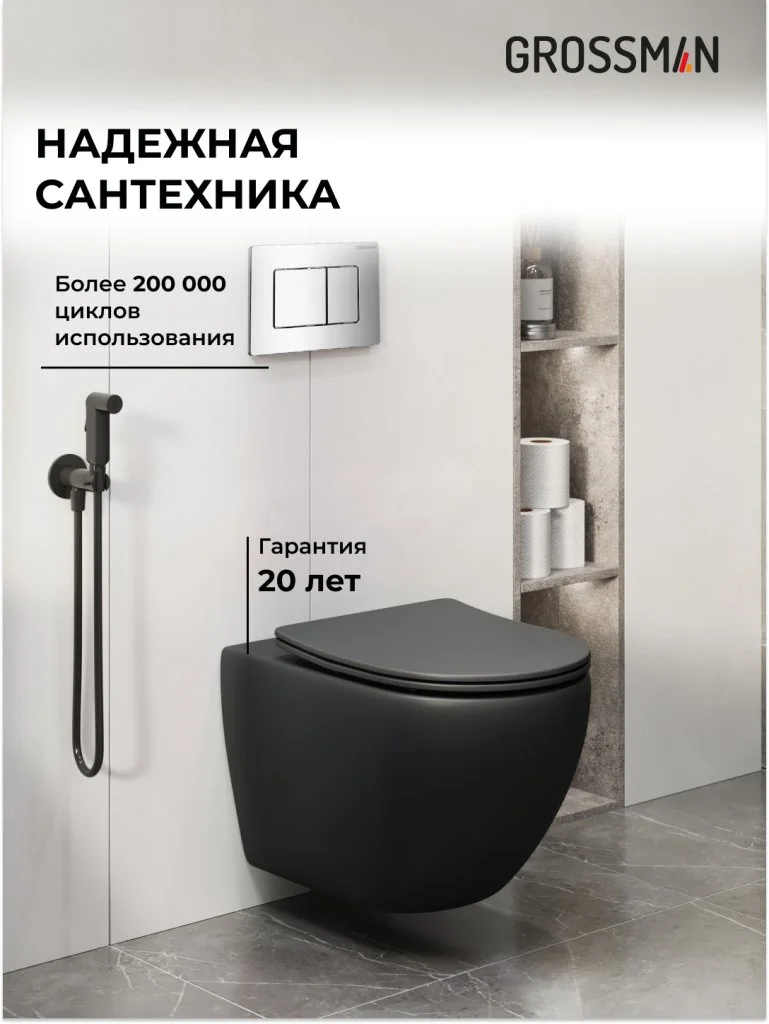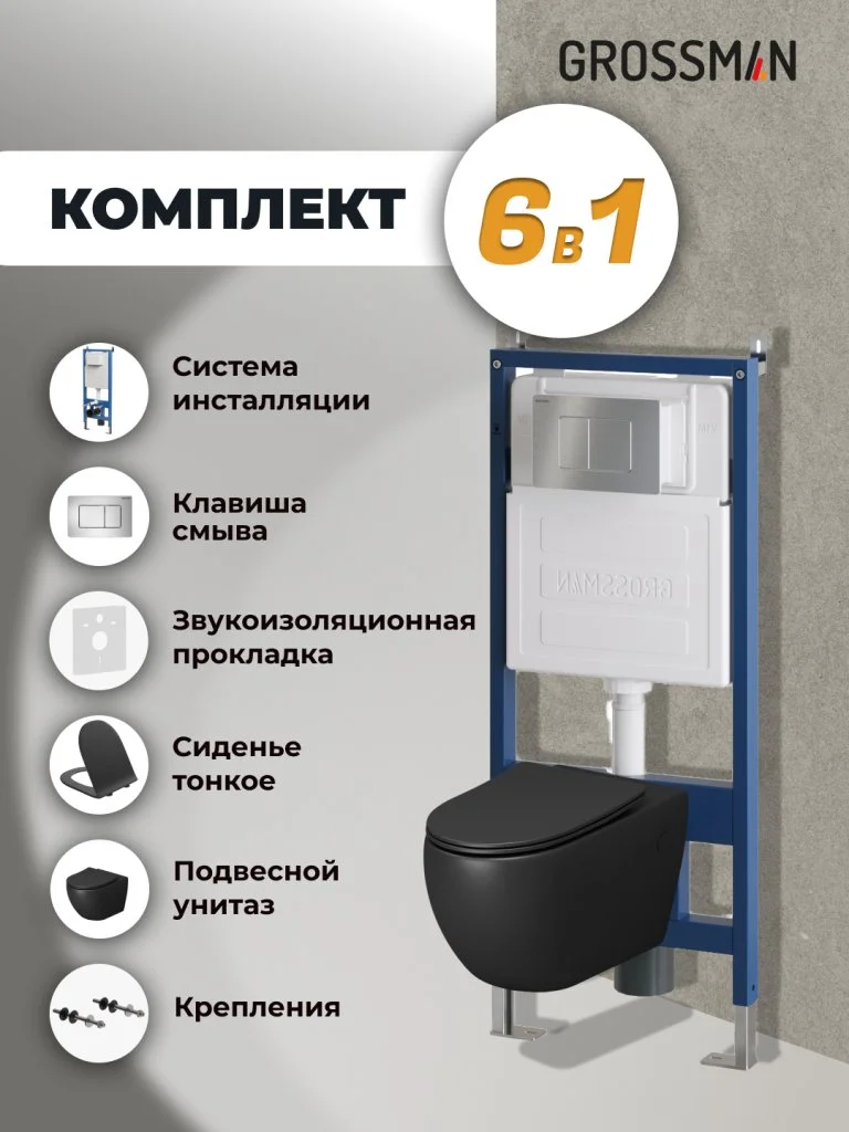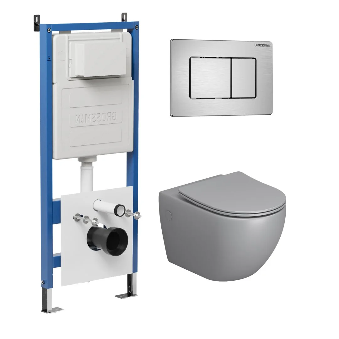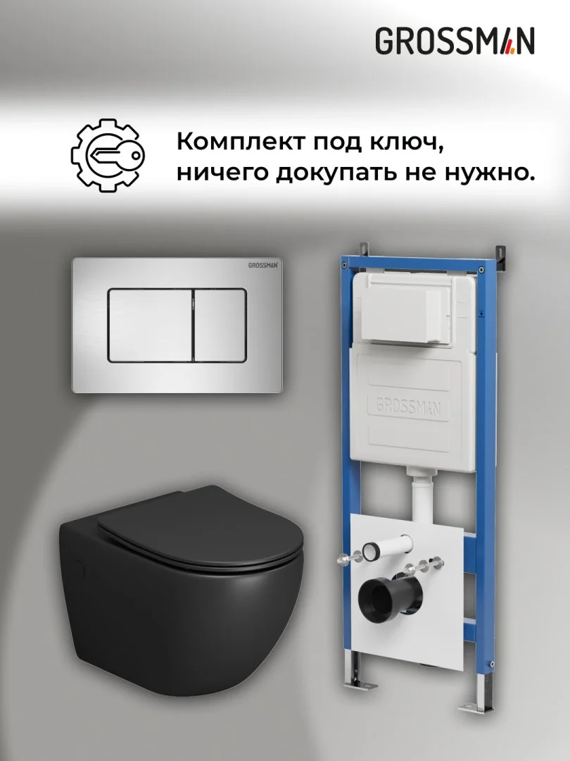 Комплект инсталляции GROSSMAN 900.K31.01.000 с клавишей смыва 700.K31.04.12M.12M хром сатиновый и унитазом GROSSMAN GR-4411BMS арт.97.4411BMS.04.12M