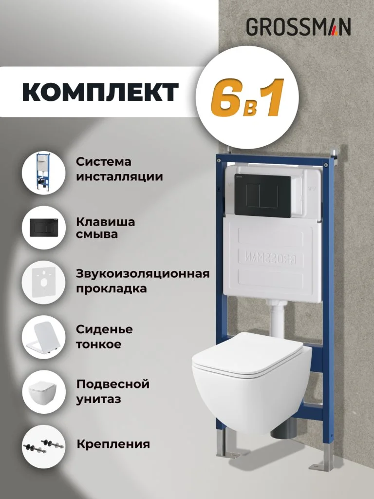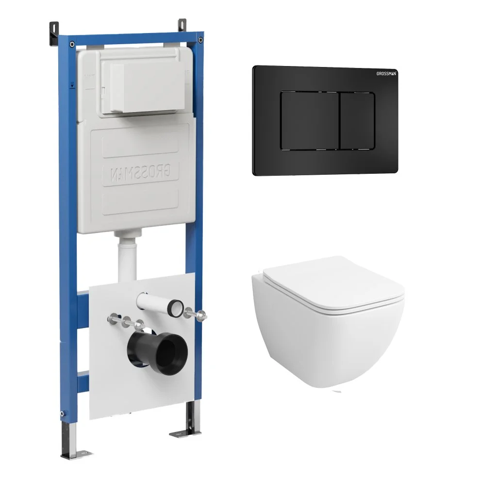 Комплект инсталляции GROSSMAN 900.K31.01.000 с клавишей смыва 700.K31.04.21M.21M черный матовый и унитазом GROSSMAN GR-4447S арт.97.4447S.04.21M