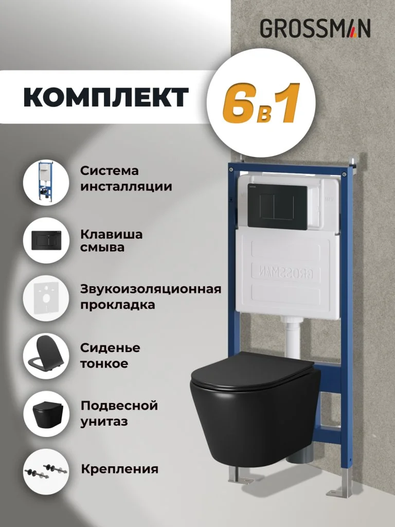 Комплект инсталляции GROSSMAN 900.K31.01.000 с клавишей смыва 700.K31.04.21M.21M черный матовый и унитазом GROSSMAN GR-4478BMS арт.97.4478BMS.04.21M