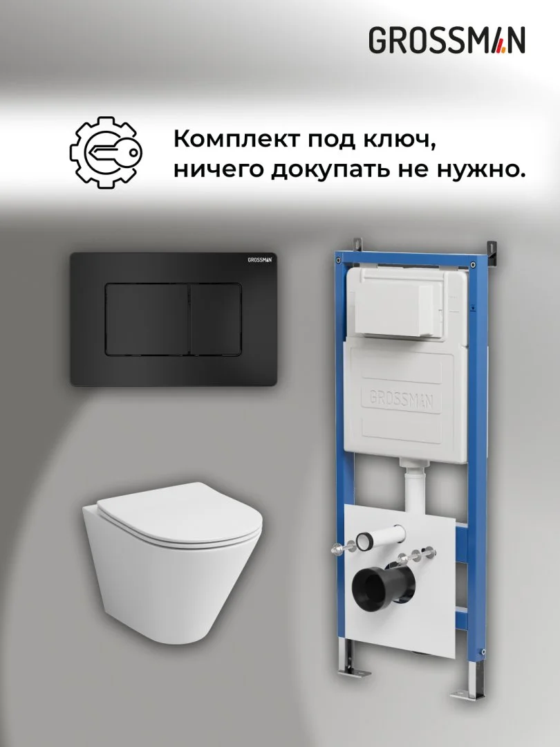 Комплект инсталляции GROSSMAN 900.K31.01.000 с клавишей смыва 700.K31.04.21M.21M черный матовый и унитазом GROSSMAN GR-4477S арт.97.4477S.04.21M