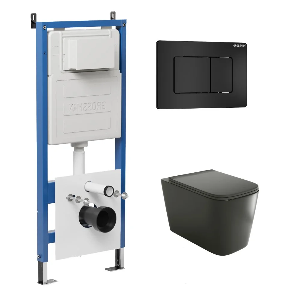 Комплект инсталляции GROSSMAN 900.K31.01.000 с клавишей смыва 700.K31.04.21M.21M черный матовый и унитазом GROSSMAN GR-4441BMS арт.97.4441BMS.04.21M