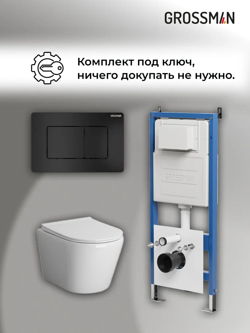 Комплект инсталляции GROSSMAN 900.K31.01.000 с клавишей смыва 700.K31.04.21M.21M черный матовый и унитазом GROSSMAN GR-4478S арт.97.4478S.04.21M