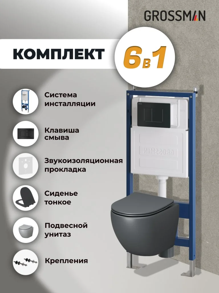 Комплект инсталляции GROSSMAN 900.K31.01.000 с клавишей смыва 700.K31.04.21M.21M черный матовый и унитазом GROSSMAN GR-4455GMS арт.97.4455GMS.04.21M