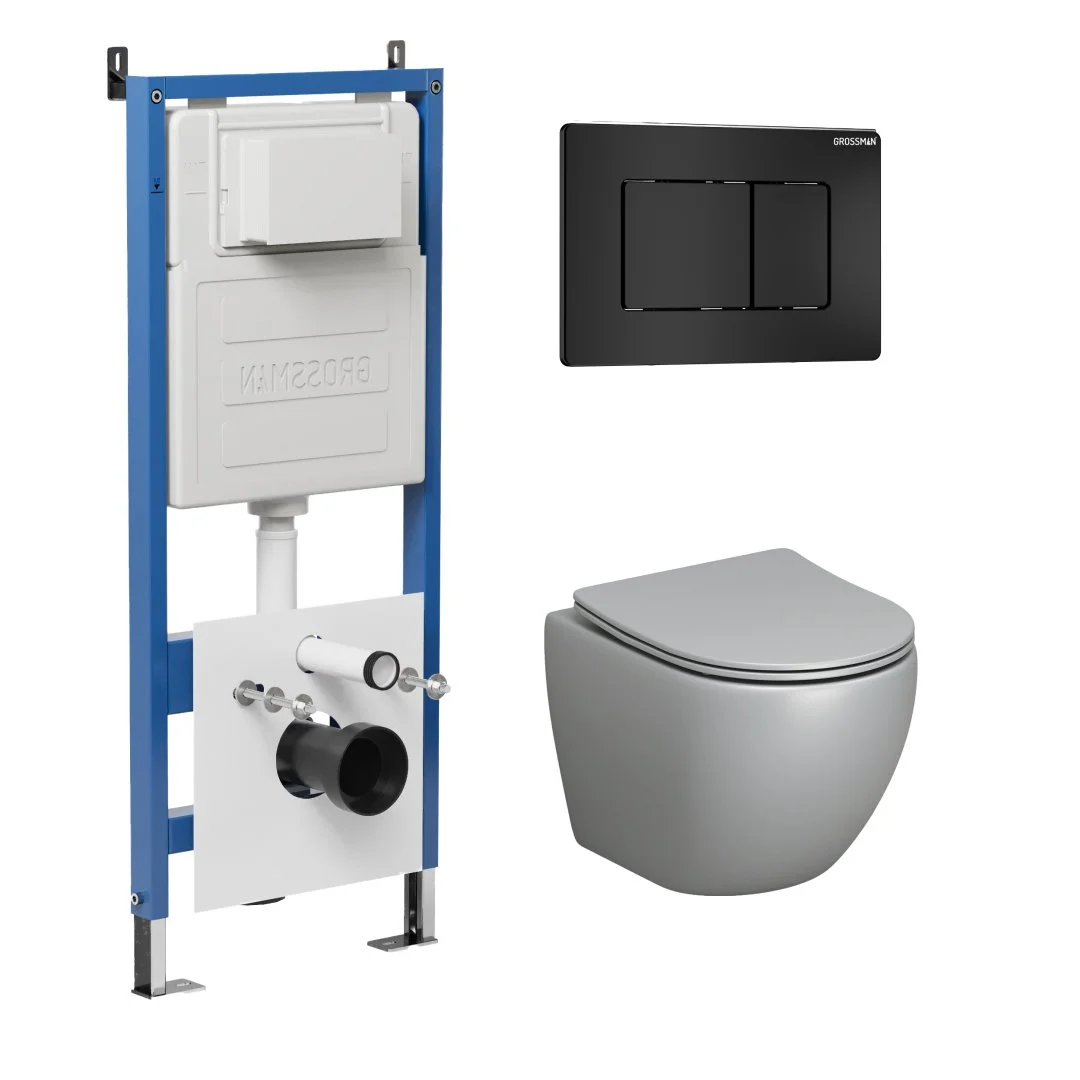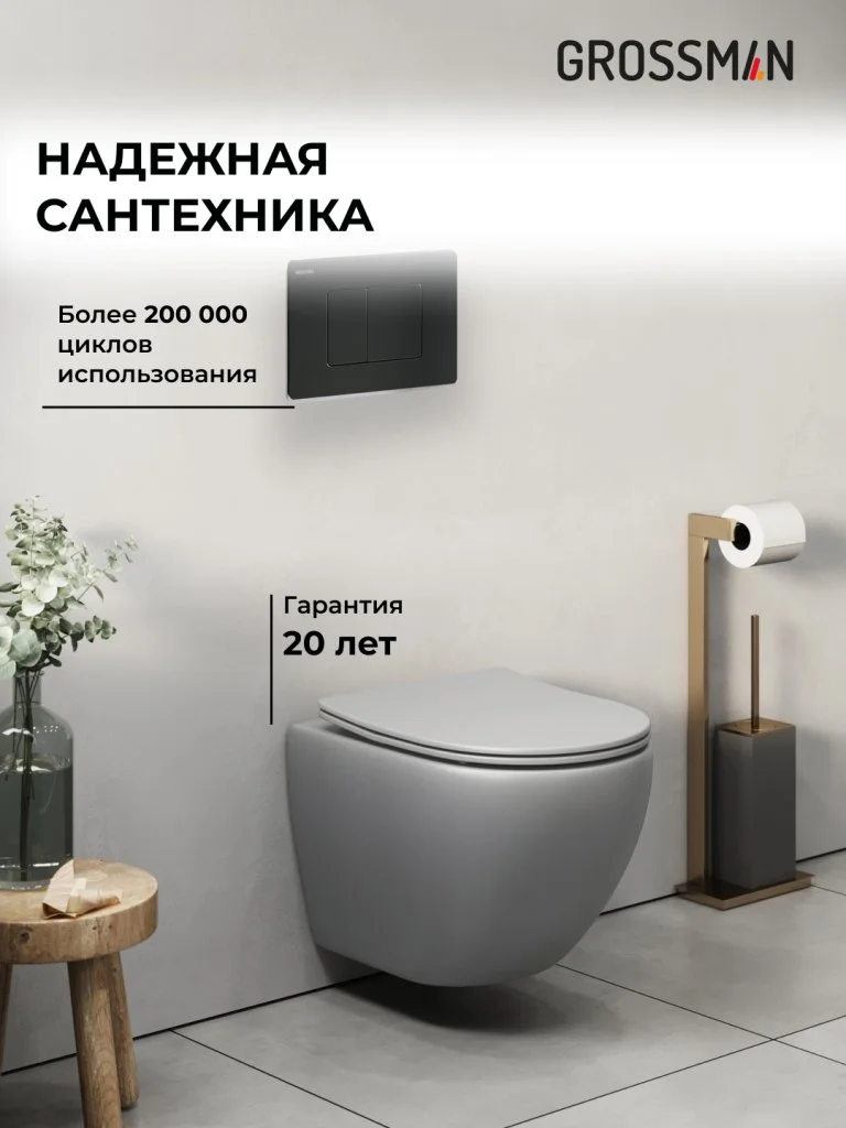 Комплект инсталляции GROSSMAN 900.K31.01.000 с клавишей смыва 700.K31.04.21M.21M черный матовый и унитазом GROSSMAN GR-4455GLMS арт.97.4455GLMS.04.21M