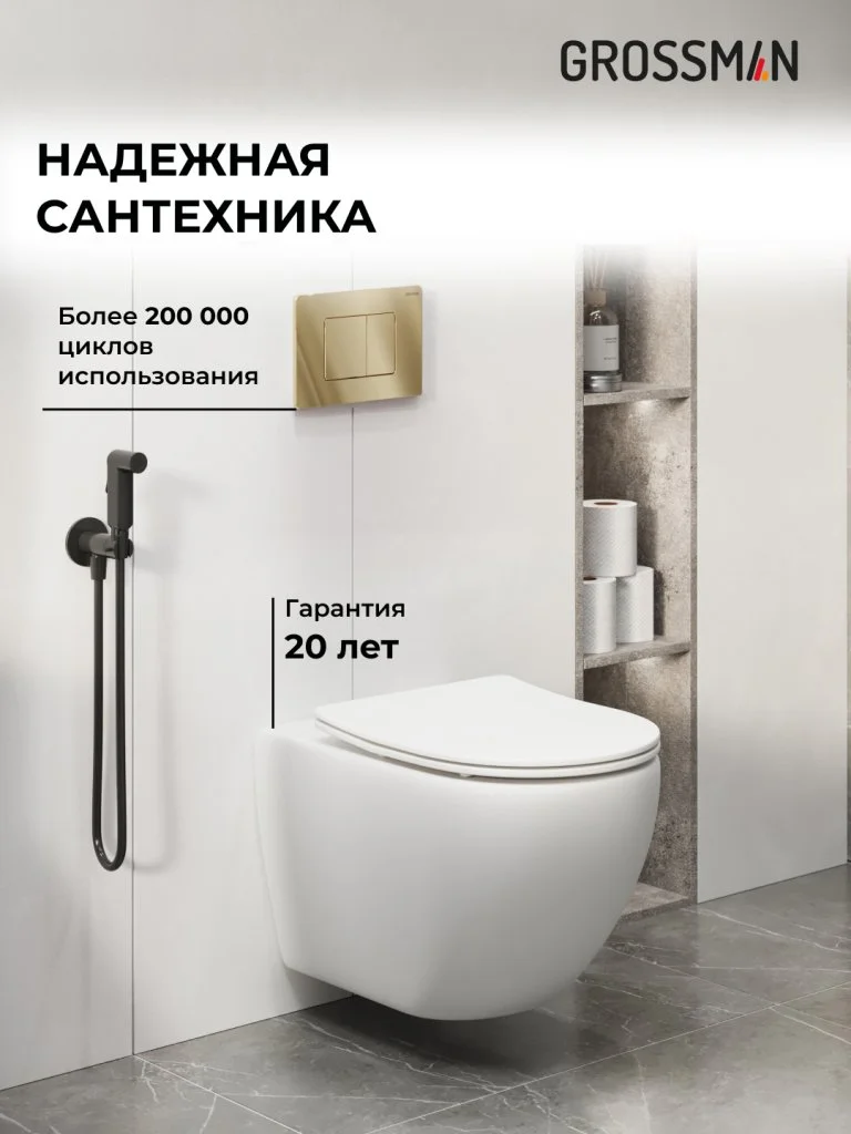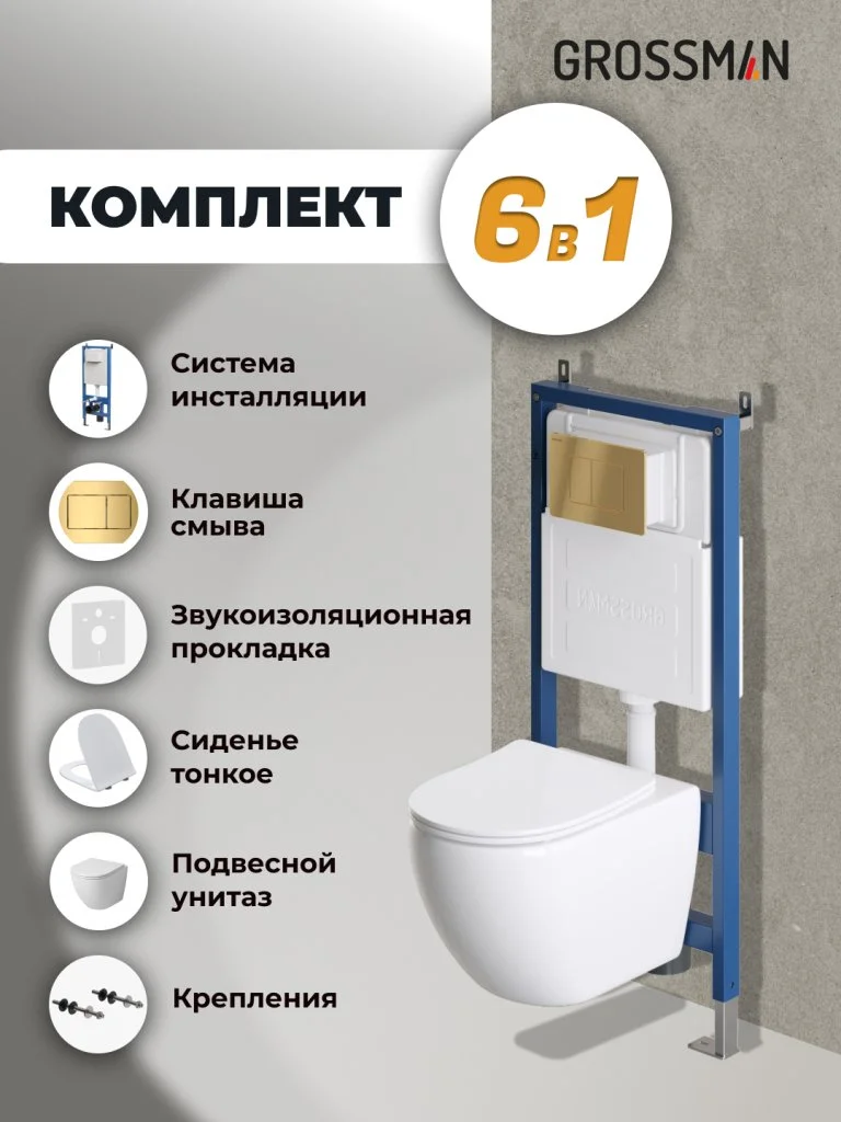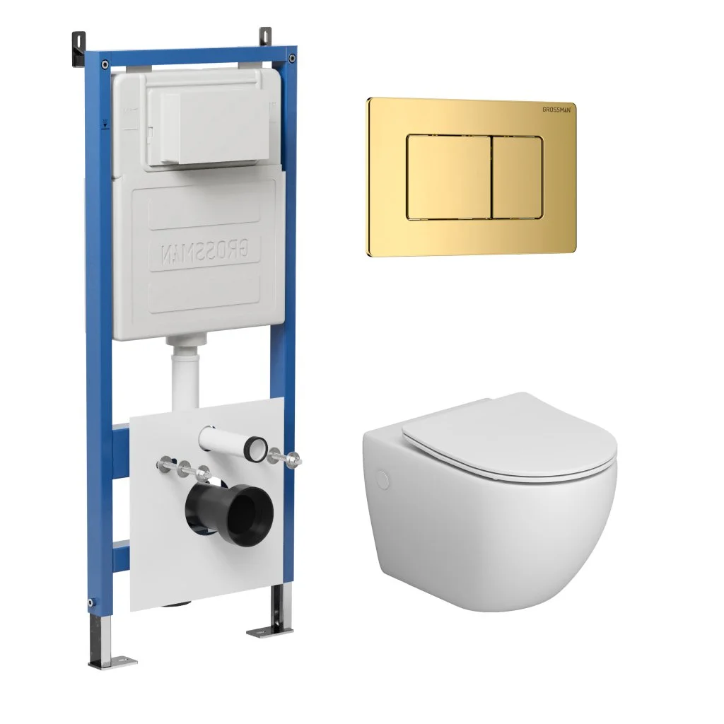 Комплект инсталляции GROSSMAN 900.K31.01.000 с клавишей смыва 700.K31.04.30M.30M золото и унитазом GROSSMAN GR-4411SQ арт.97.4411SQ.04.30M