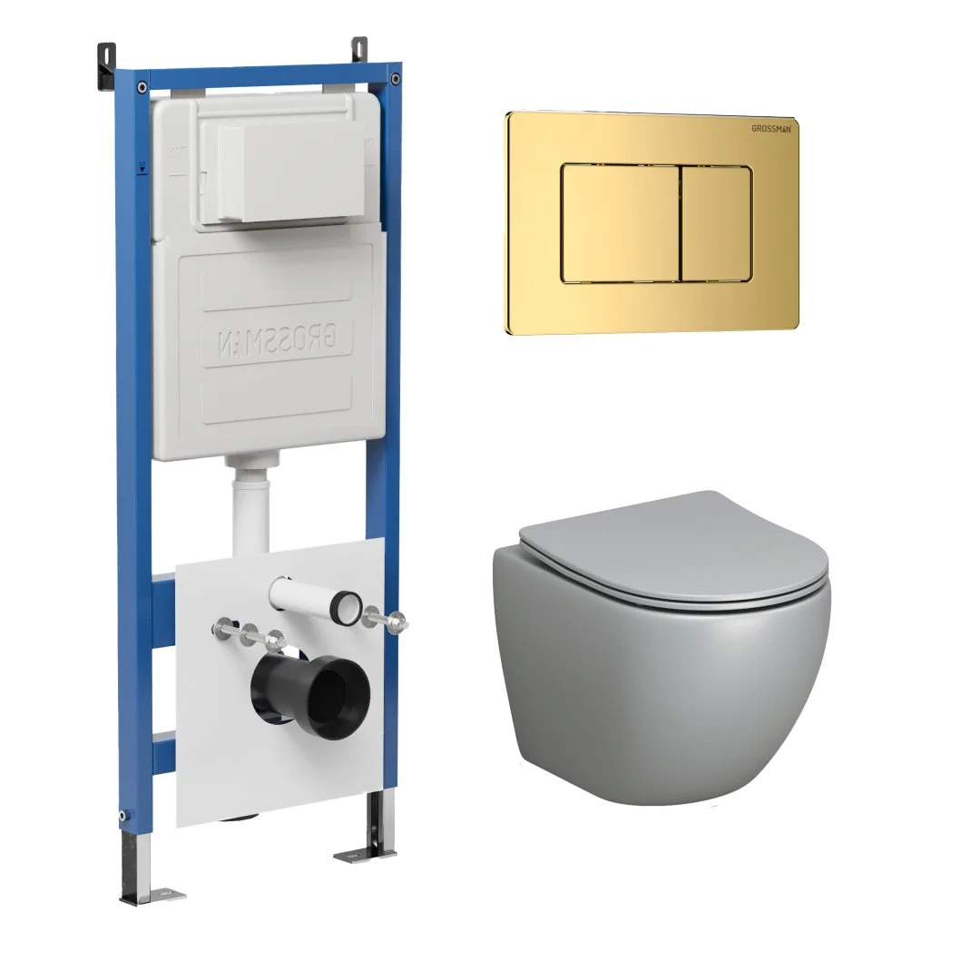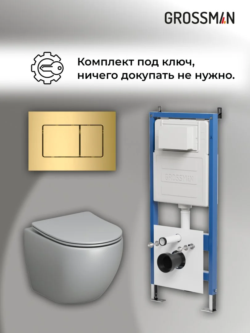 Комплект инсталляции GROSSMAN 900.K31.01.000 с клавишей смыва 700.K31.04.30M.30M золото и унитазом GROSSMAN GR-4455GLMS арт.97.4455GLMS.04.30M