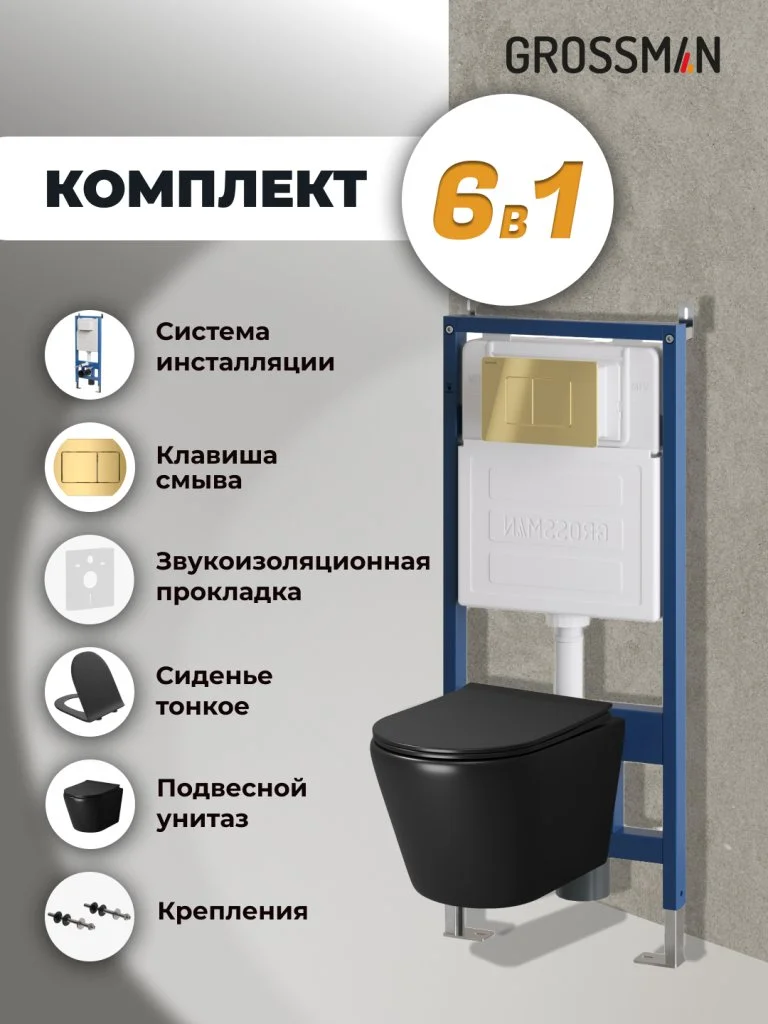Комплект инсталляции GROSSMAN 900.K31.01.000 с клавишей смыва 700.K31.04.30M.30M золото и унитазом GROSSMAN GR-4478BMS арт.97.4478BMS.04.30M