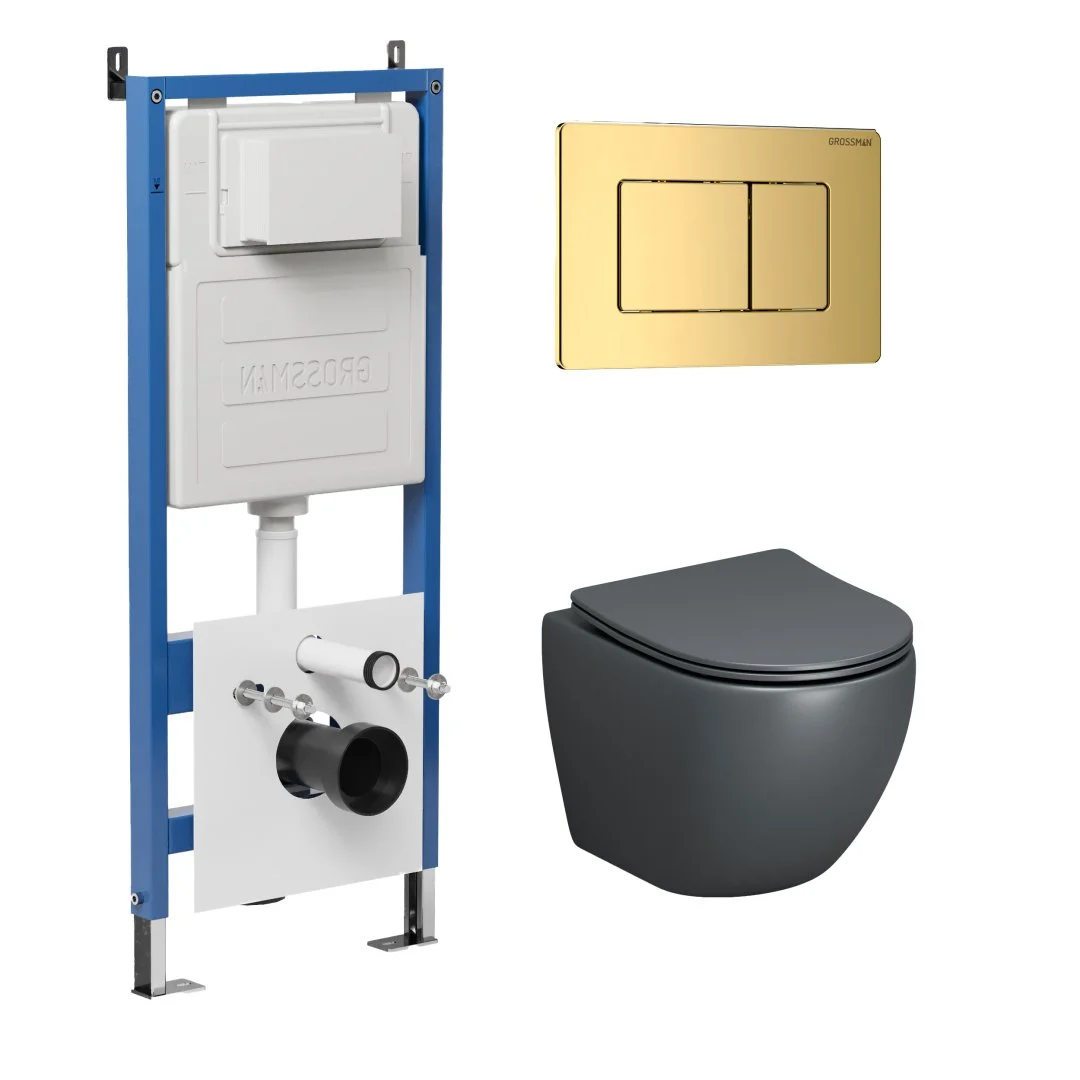 Комплект инсталляции GROSSMAN 900.K31.01.000 с клавишей смыва 700.K31.04.30M.30M золото и унитазом GROSSMAN GR-4455GMS арт.97.4455GMS.04.30M