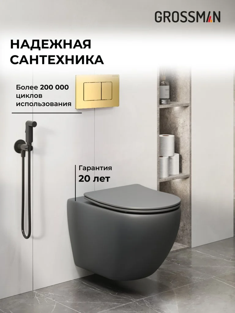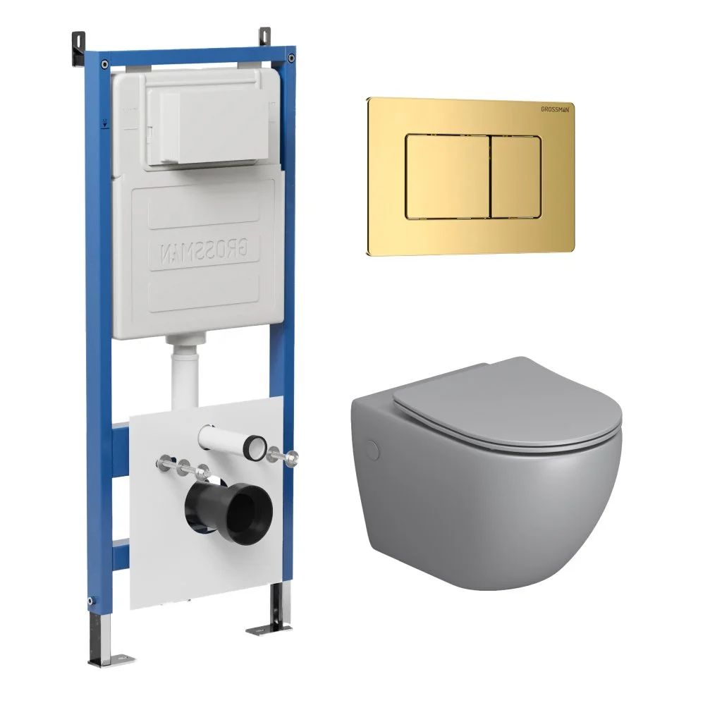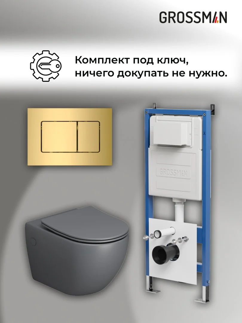 Комплект инсталляции GROSSMAN 900.K31.01.000 с клавишей смыва 700.K31.04.30M.30M золото и унитазом GROSSMAN GR-4411GMS арт.97.4411GMS.04.30M