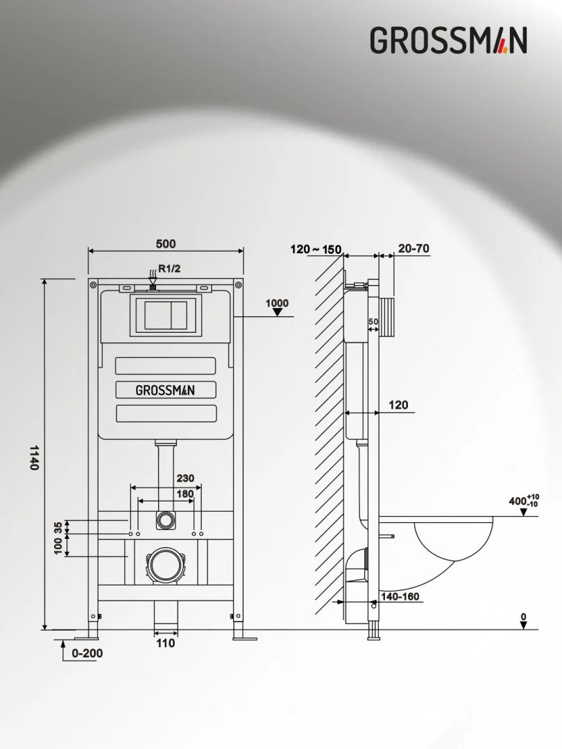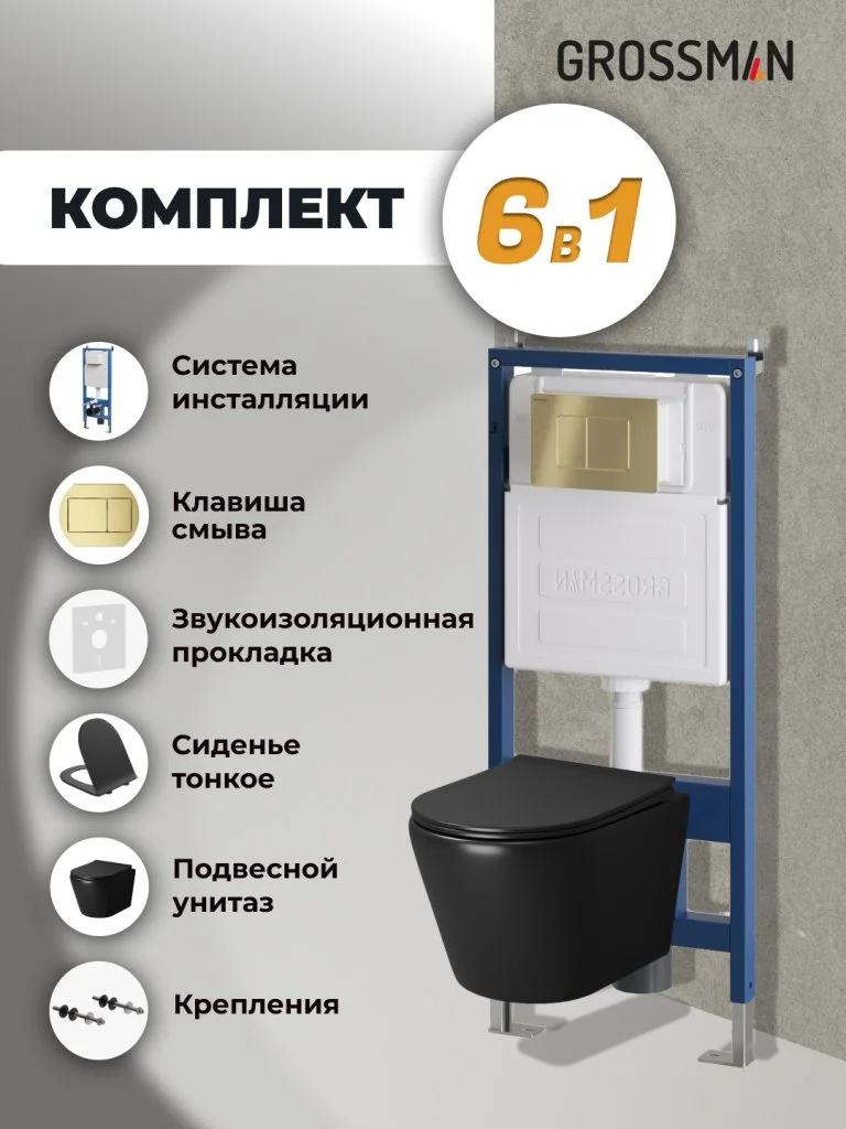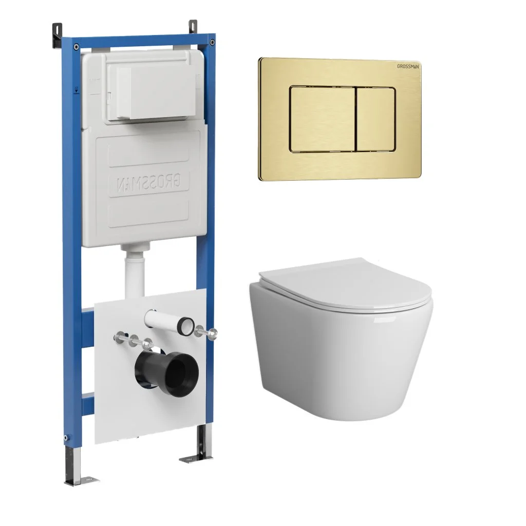 Комплект инсталляции GROSSMAN 900.K31.01.000 с клавишей смыва 700.K31.04.32M.32M золото сатиновое и унитазом GROSSMAN GR-4478BMS арт.97.4478BMS.04.32M