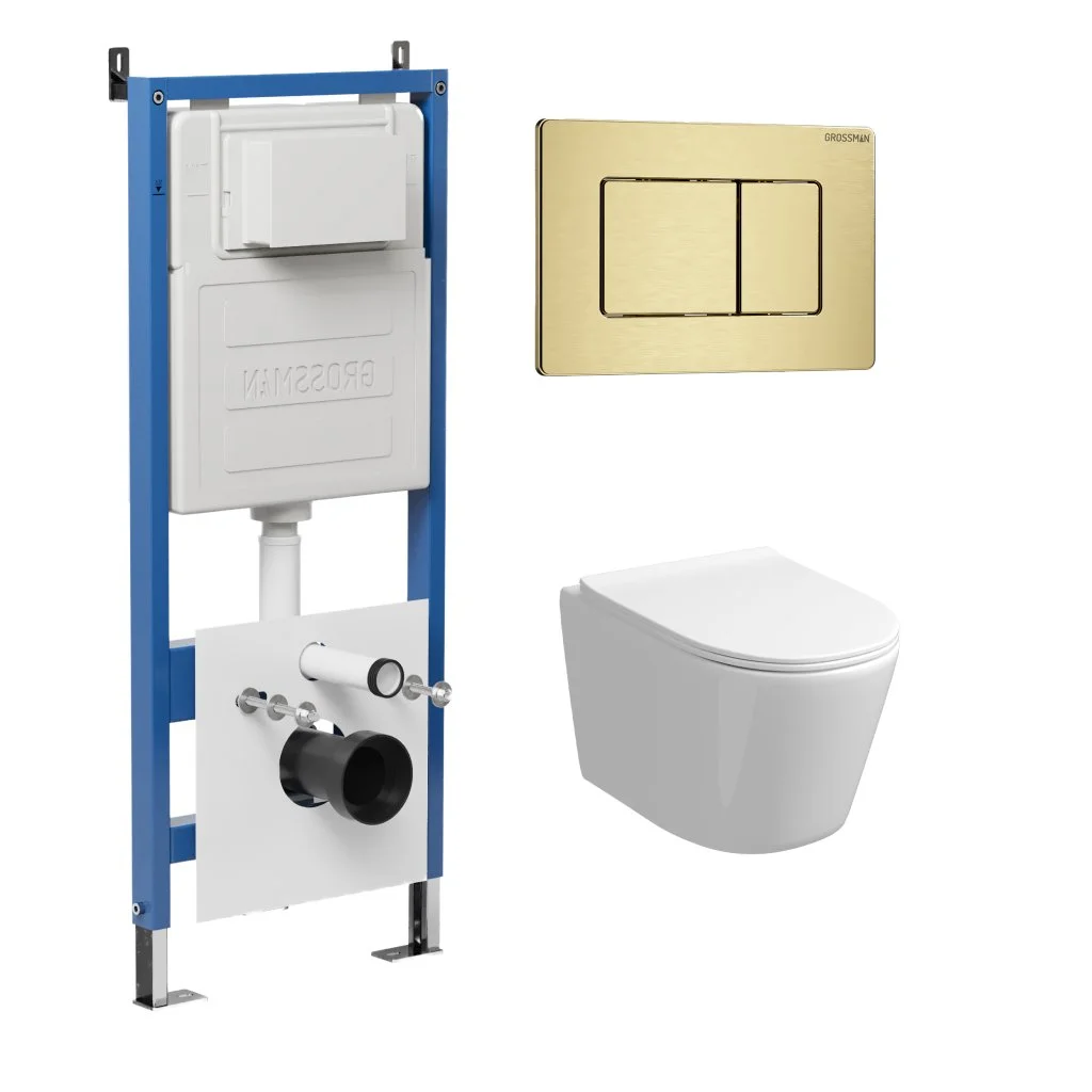 Комплект инсталляции GROSSMAN 900.K31.01.000 с клавишей смыва 700.K31.04.32M.32M золото сатиновое и унитазом GROSSMAN GR-4477SQ арт.97.4477SQ.04.32M