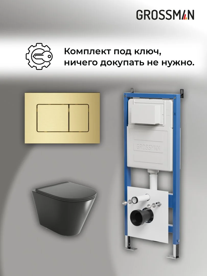 Комплект инсталляции GROSSMAN 900.K31.01.000 с клавишей смыва 700.K31.04.32M.32M золото сатиновое и унитазом GROSSMAN GR-4477BMS арт.97.4477BMS.04.32M