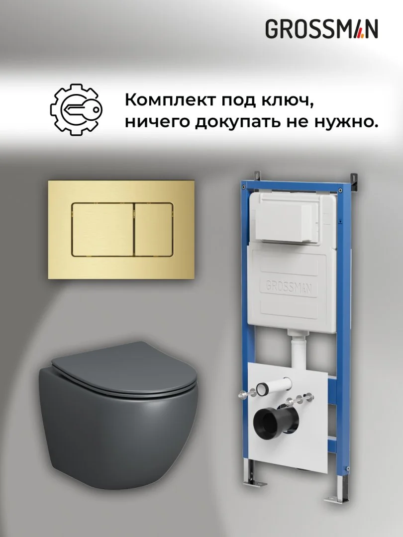 Комплект инсталляции GROSSMAN 900.K31.01.000 с клавишей смыва 700.K31.04.32M.32M золото сатиновое и унитазом GROSSMAN GR-4455GMS арт.97.4455GMS.04.32M