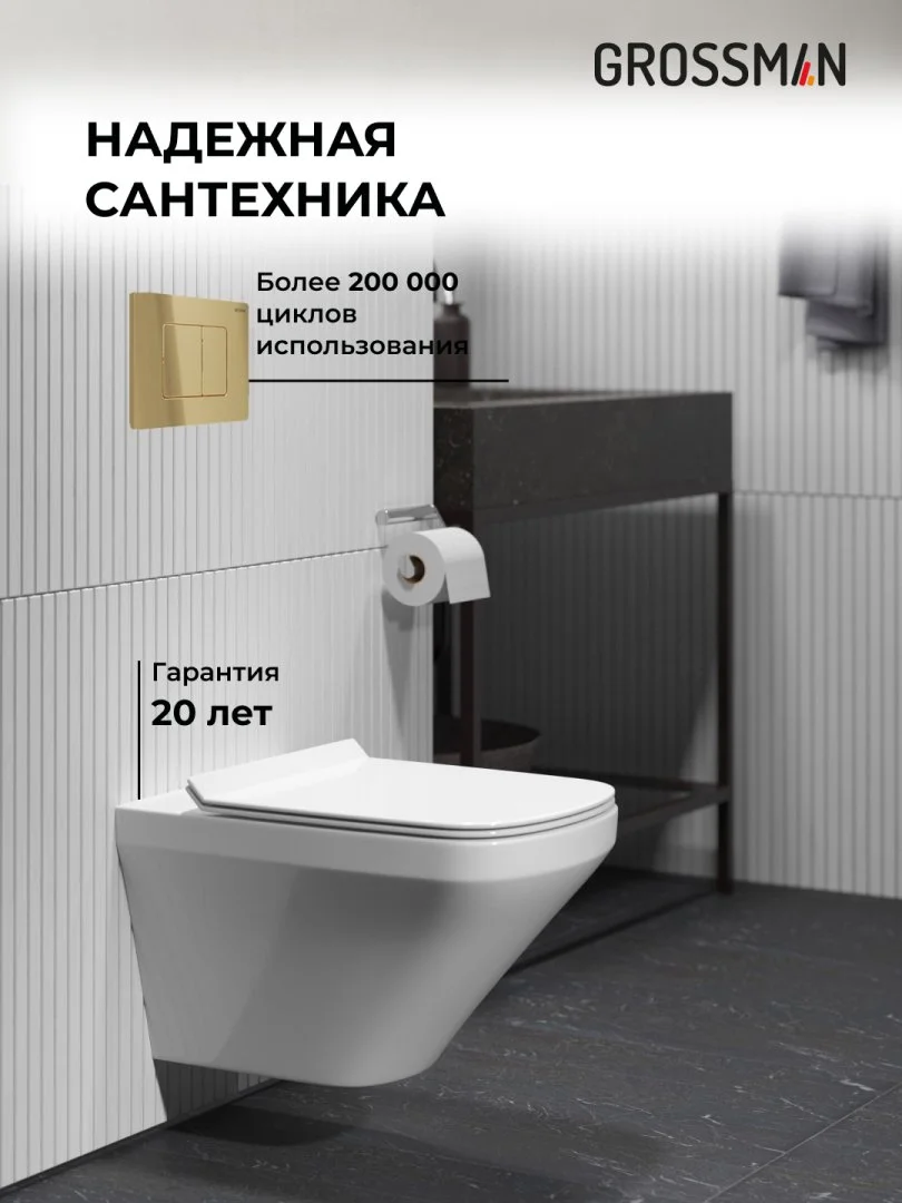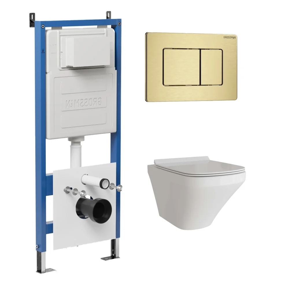 Комплект инсталляции GROSSMAN 900.K31.01.000 с клавишей смыва 700.K31.04.32M.32M золото сатиновое и унитазом GROSSMAN GR-4440S арт.97.4440S.04.32M