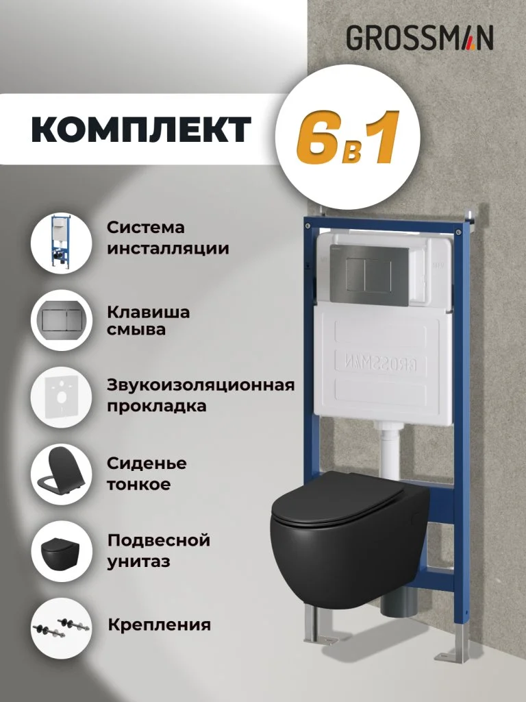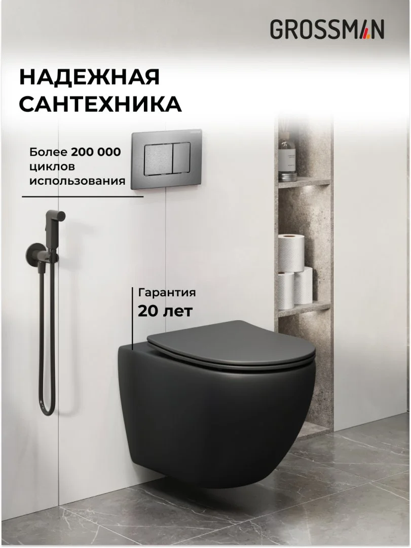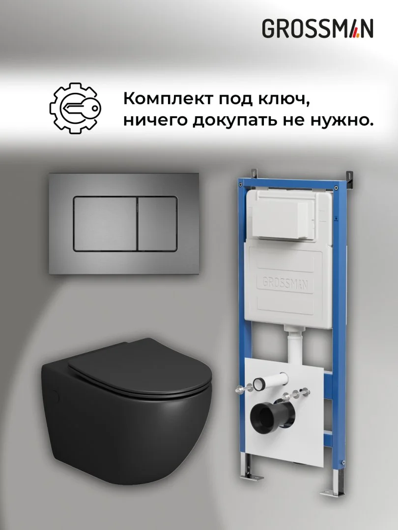 Комплект инсталляции GROSSMAN 900.K31.01.000 с клавишей смыва 700.K31.04.42M.42M графит сатиновый и унитазом GROSSMAN GR-4411BMS арт.97.4411BMS.04.42M