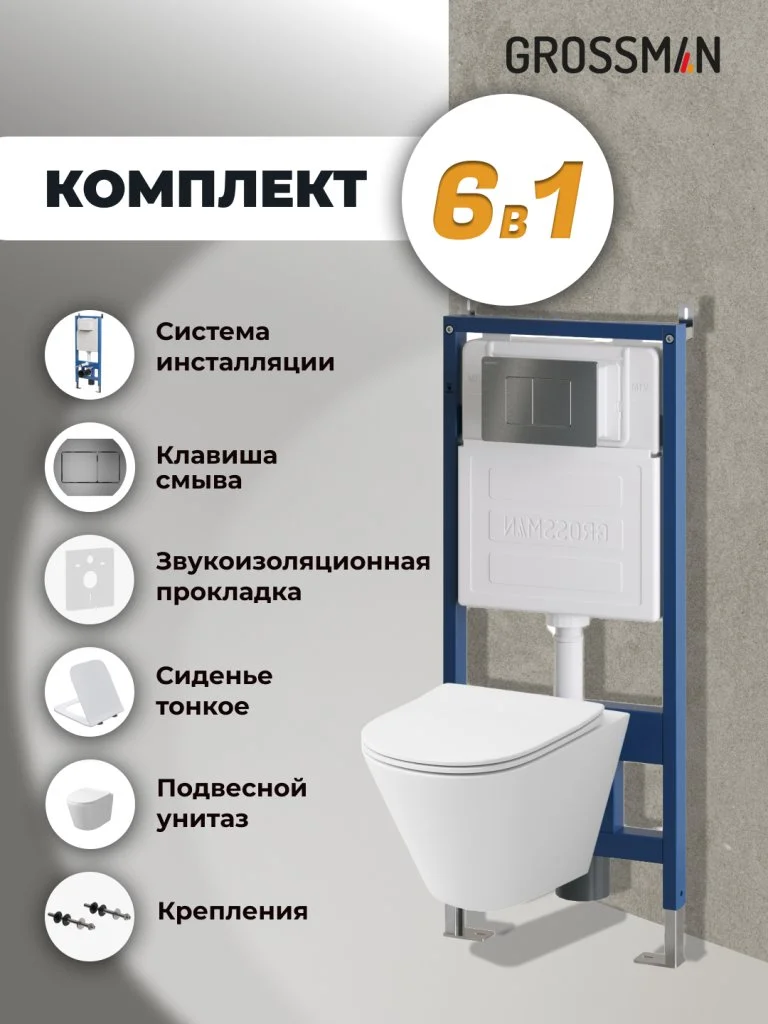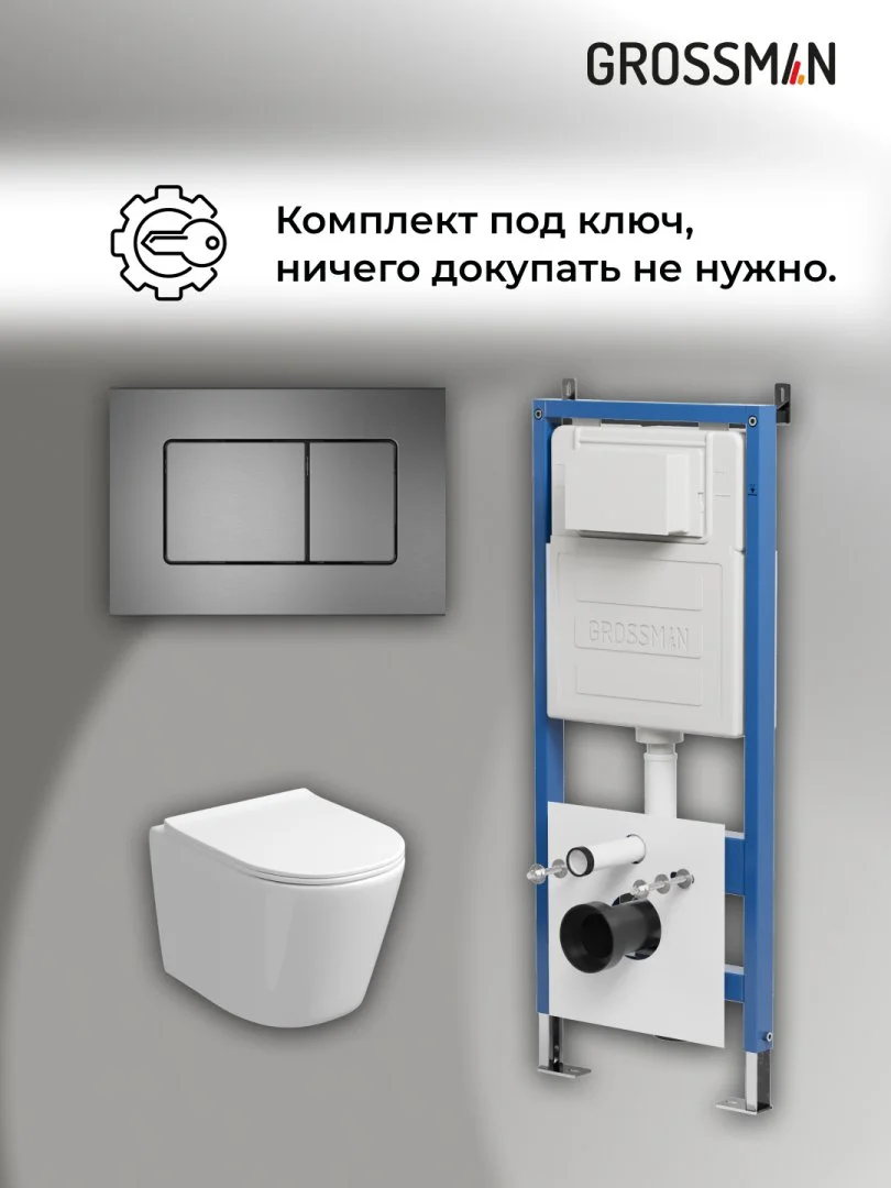 Комплект инсталляции GROSSMAN 900.K31.01.000 с клавишей смыва 700.K31.04.42M.42M графит сатиновый и унитазом GROSSMAN GR-4477SQ арт.97.4477SQ.04.42M