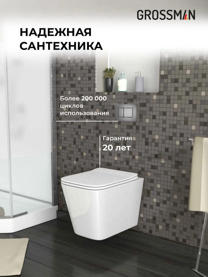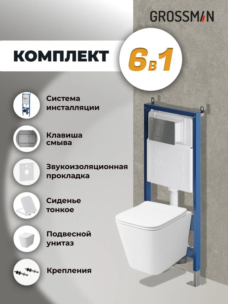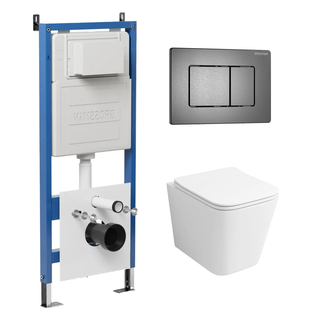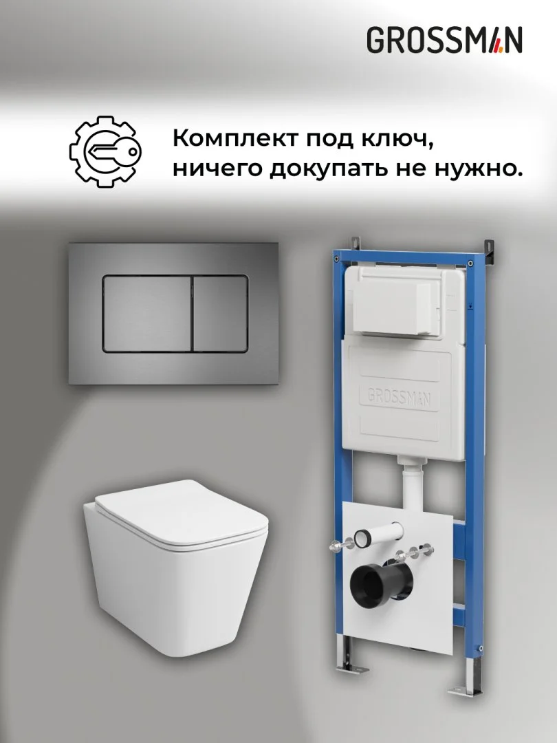 Комплект инсталляции GROSSMAN 900.K31.01.000 с клавишей смыва 700.K31.04.42M.42M графит сатиновый и унитазом GROSSMAN GR-4441S арт.97.4441S.04.42M