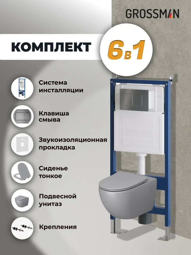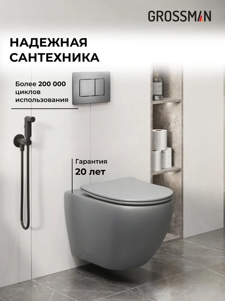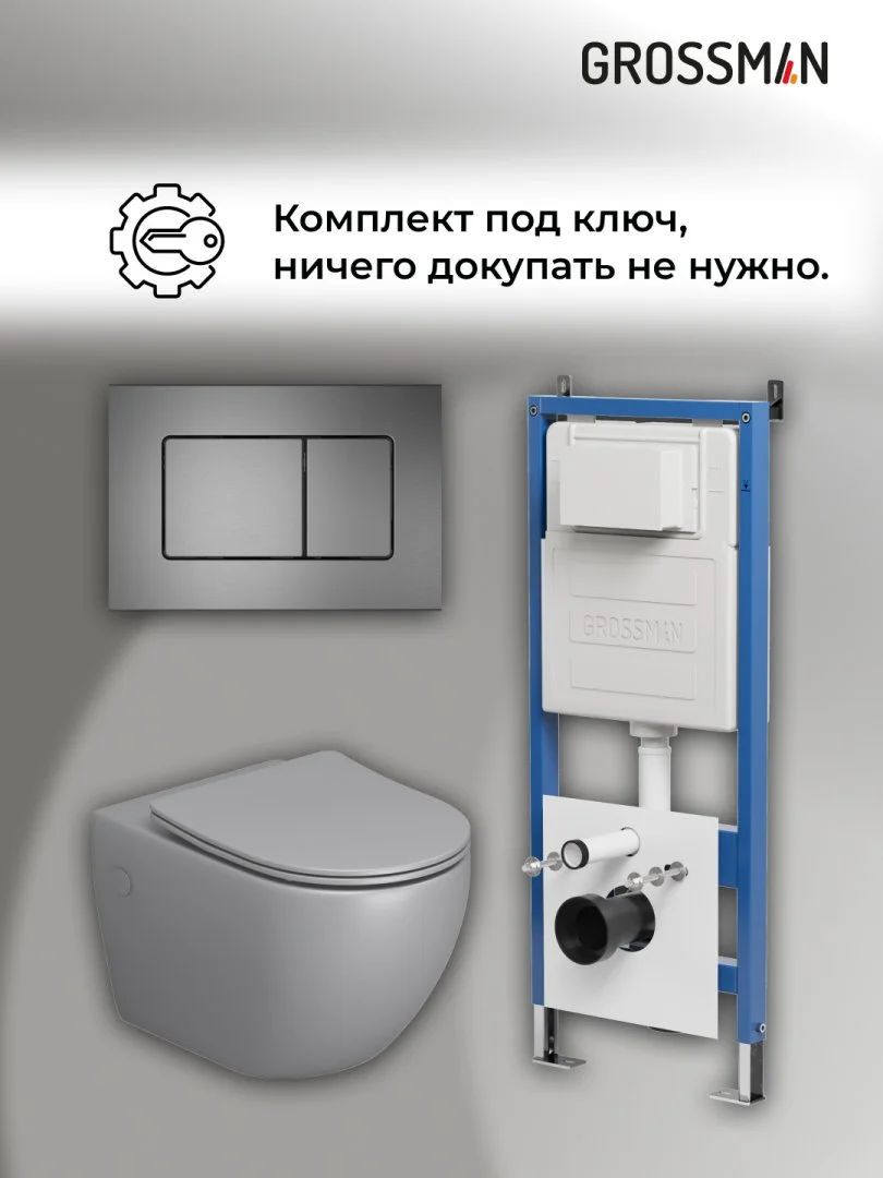 Комплект инсталляции GROSSMAN 900.K31.01.000 с клавишей смыва 700.K31.04.42M.42M графит сатиновый и унитазом GROSSMAN GR-4411GLMS арт.97.4411GLMS.04.42M