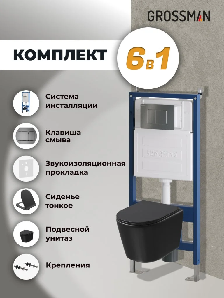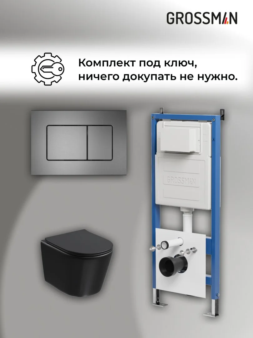 Комплект инсталляции GROSSMAN 900.K31.01.000 с клавишей смыва 700.K31.04.42M.42M графит сатиновый и унитазом GROSSMAN GR-4477BMSQ арт.97.4477BMSQ.04.42M