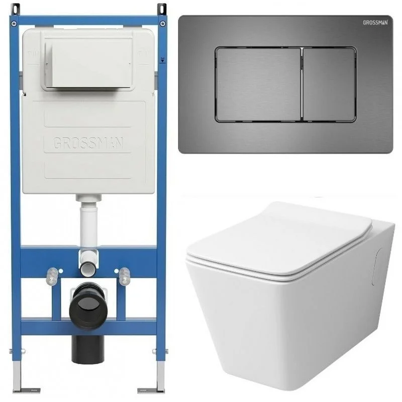 Комплект инсталляции GROSSMAN 900.K31.01.000 с клавишей смыва 700.K31.04.42M.42M графит сатиновый и унитазом GROSSMAN GR-4414S арт.97.4414S.04.42M