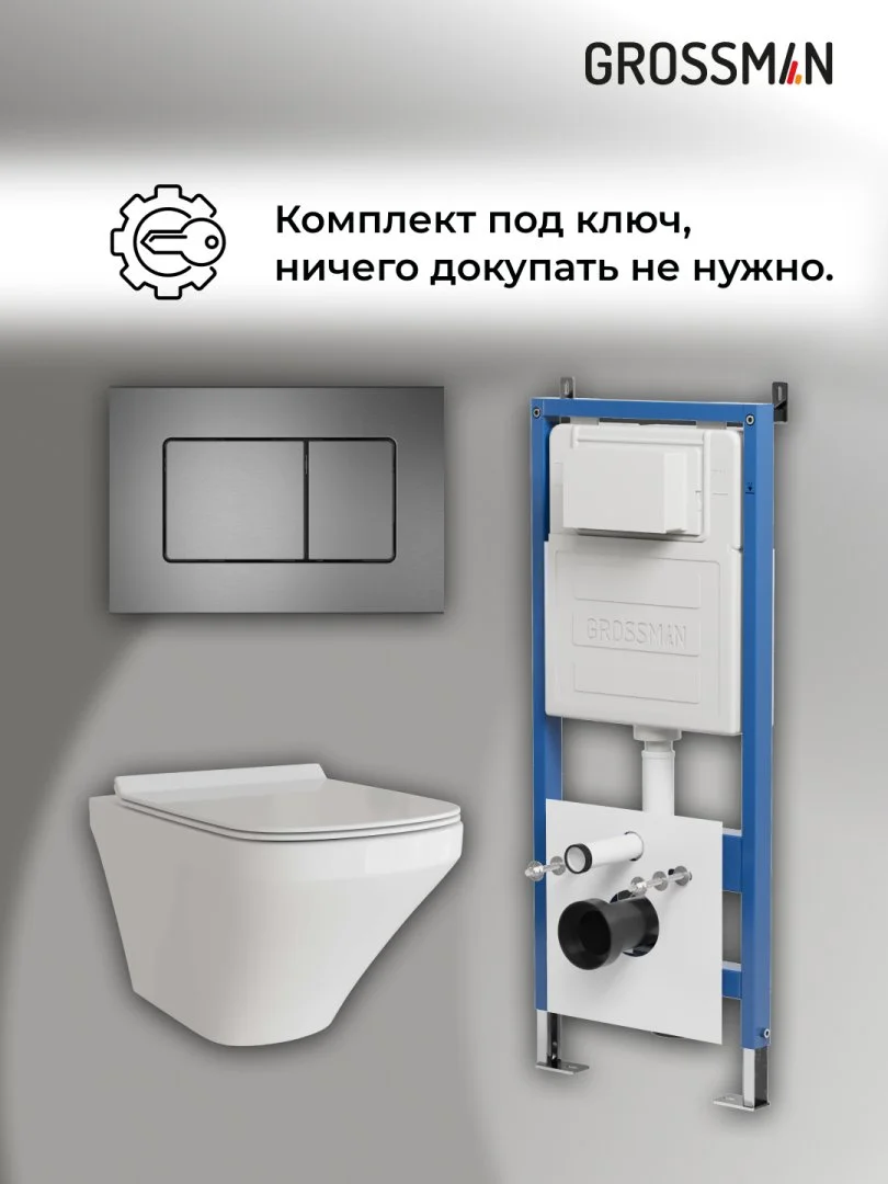Комплект инсталляции GROSSMAN 900.K31.01.000 с клавишей смыва 700.K31.04.42M.42M графит сатиновый и унитазом GROSSMAN GR-4440S арт.97.4440S.04.42M