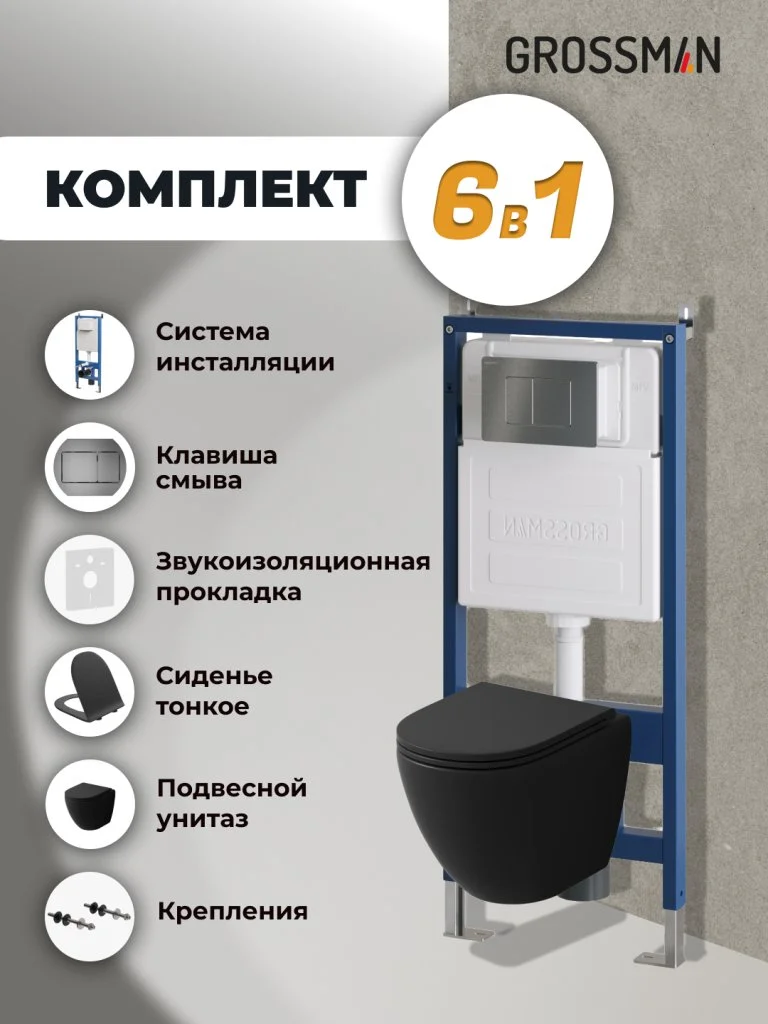 Комплект инсталляции GROSSMAN 900.K31.01.000 с клавишей смыва 700.K31.04.42M.42M графит сатиновый и унитазом GROSSMAN GR-4455BMS арт.97.4455BMS.04.42M