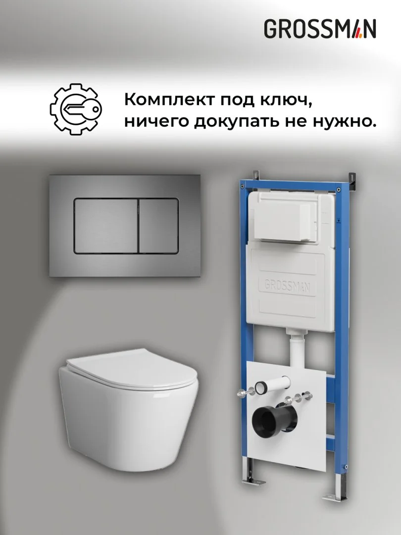 Комплект инсталляции GROSSMAN 900.K31.01.000 с клавишей смыва 700.K31.04.42M.42M графит сатиновый и унитазом GROSSMAN GR-4478S арт.97.4478S.04.42M