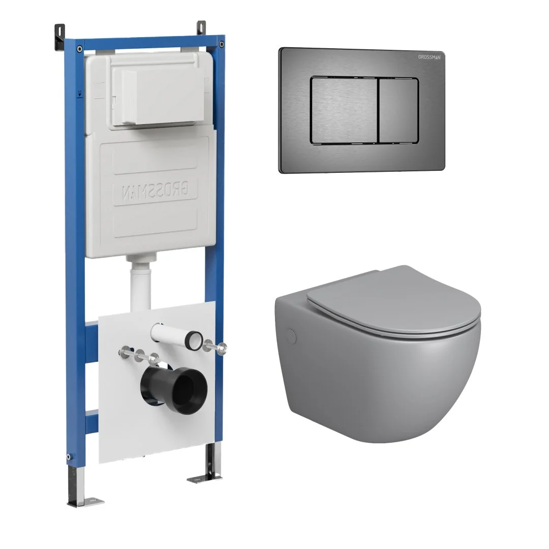 Комплект инсталляции GROSSMAN 900.K31.01.000 с клавишей смыва 700.K31.04.42M.42M графит сатиновый и унитазом GROSSMAN GR-4411GMS арт.97.4411GMS.04.42M