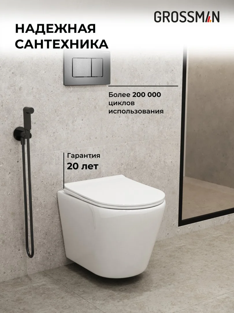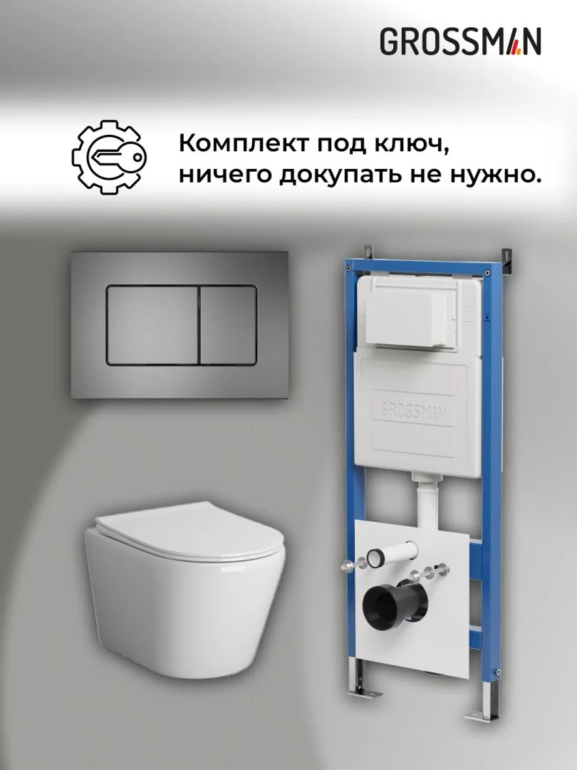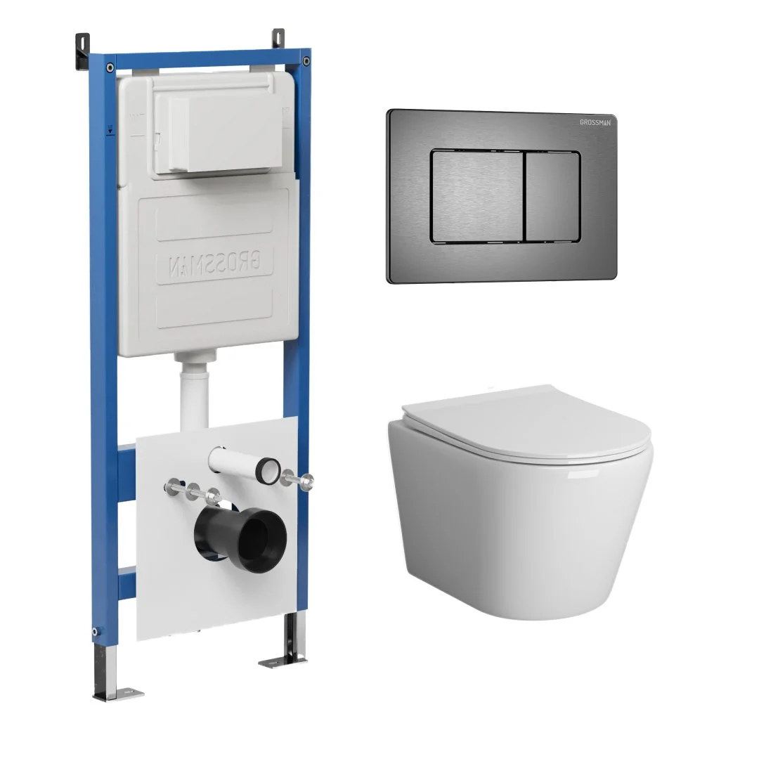 Комплект инсталляции GROSSMAN 900.K31.01.000 с клавишей смыва 700.K31.04.42M.42M графит сатиновый и унитазом GROSSMAN GR-4478SQ арт.97.4478SQ.04.42M