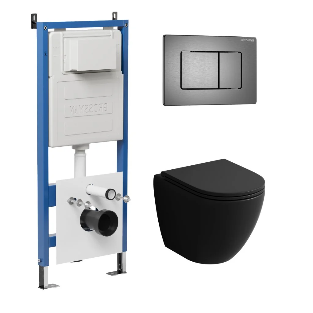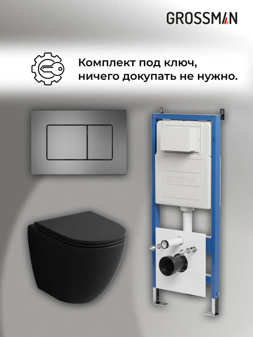 Комплект инсталляции GROSSMAN 900.K31.01.000 с клавишей смыва 700.K31.04.42M.42M графит сатиновый и унитазом GROSSMAN GR-4455BMSQ арт.97.4455BMSQ.04.42M