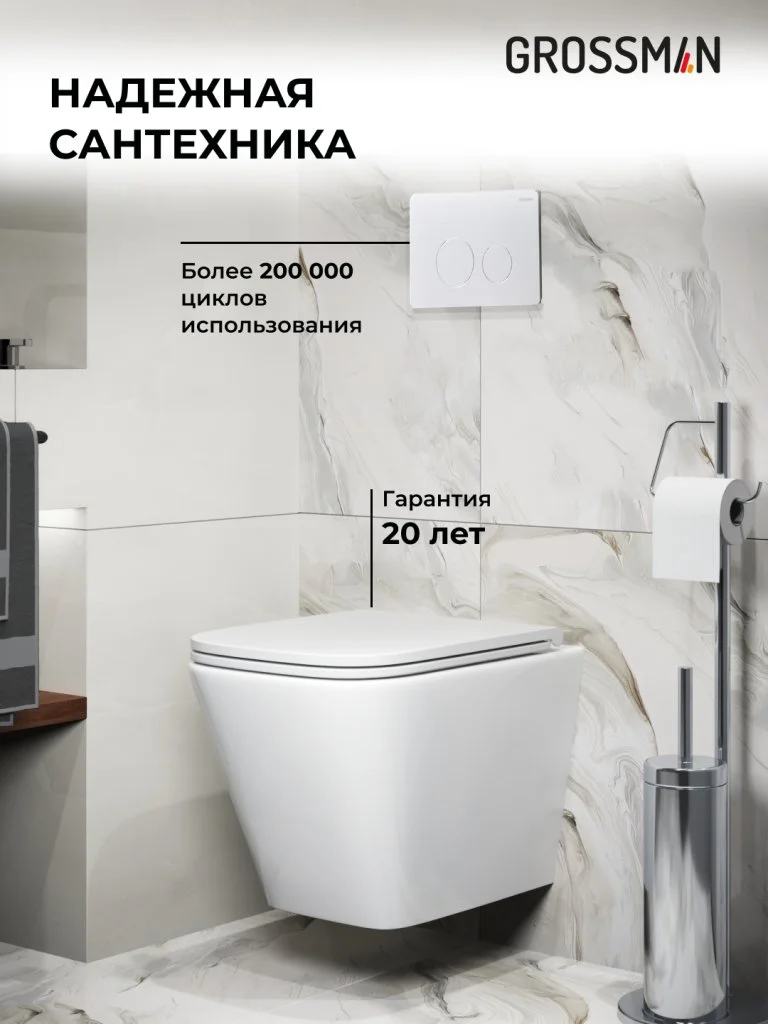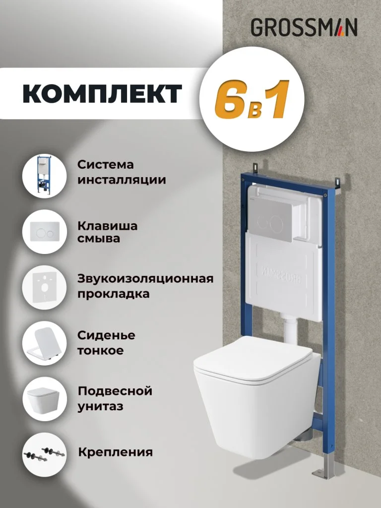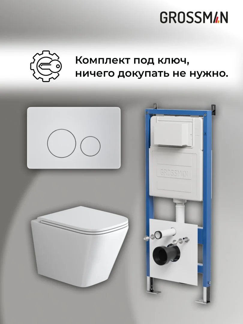 Комплект инсталляции GROSSMAN 900.K31.01.000 с клавишей смыва 700.K31.05.01M.01M белый матовый и унитазом GROSSMAN GR-4479SQ арт.97.4479SQ.05.01M