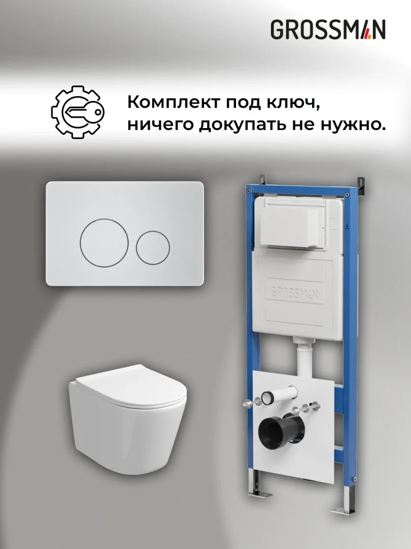 Комплект инсталляции GROSSMAN 900.K31.01.000 с клавишей смыва 700.K31.05.01M.01M белый матовый и унитазом GROSSMAN GR-4477SQ арт.97.4477SQ.05.01M