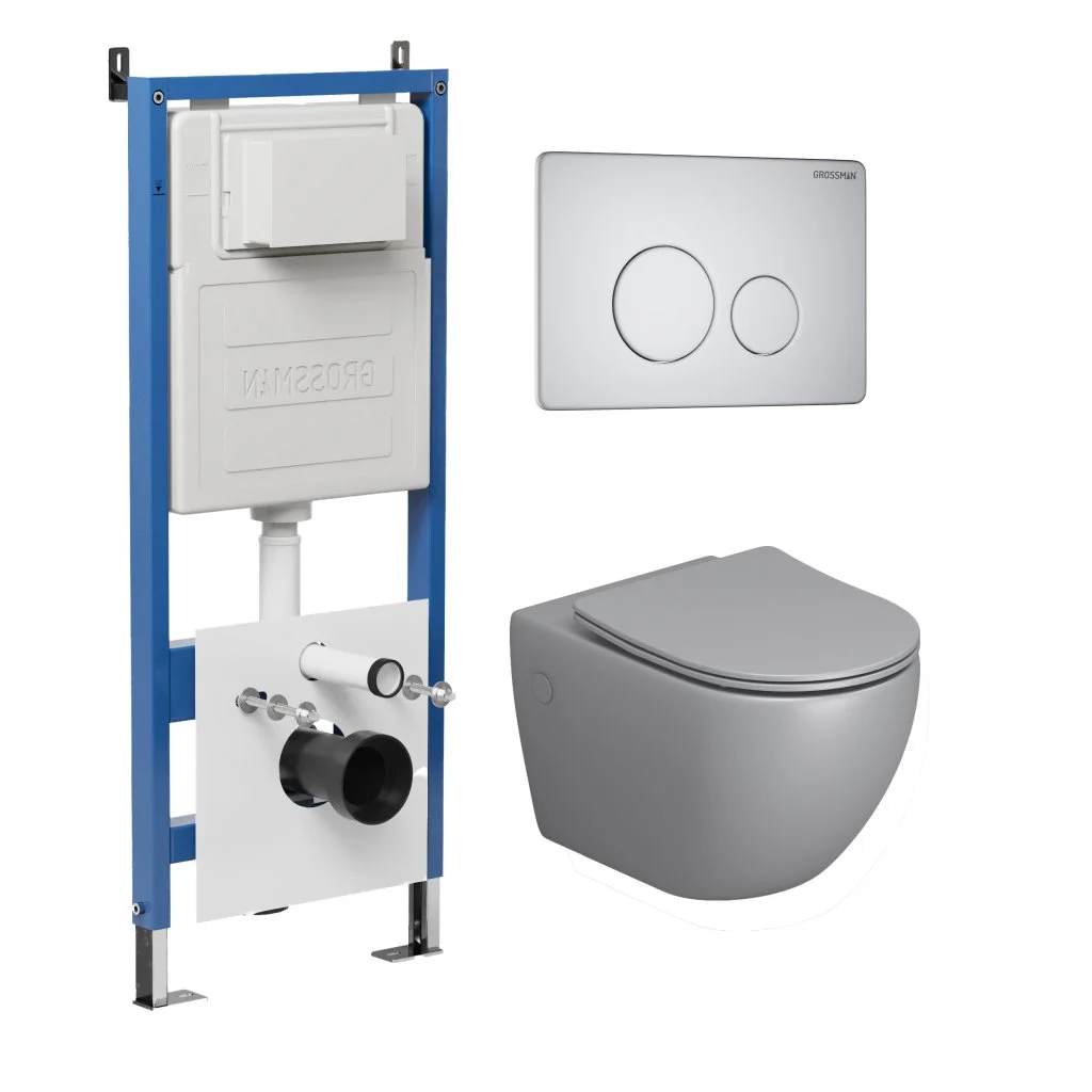 Комплект инсталляции GROSSMAN 900.K31.01.000 с клавишей смыва 700.K31.05.01M.01M белый матовый и унитазом GROSSMAN GR-4411SQ арт.97.4411SQ.05.01M