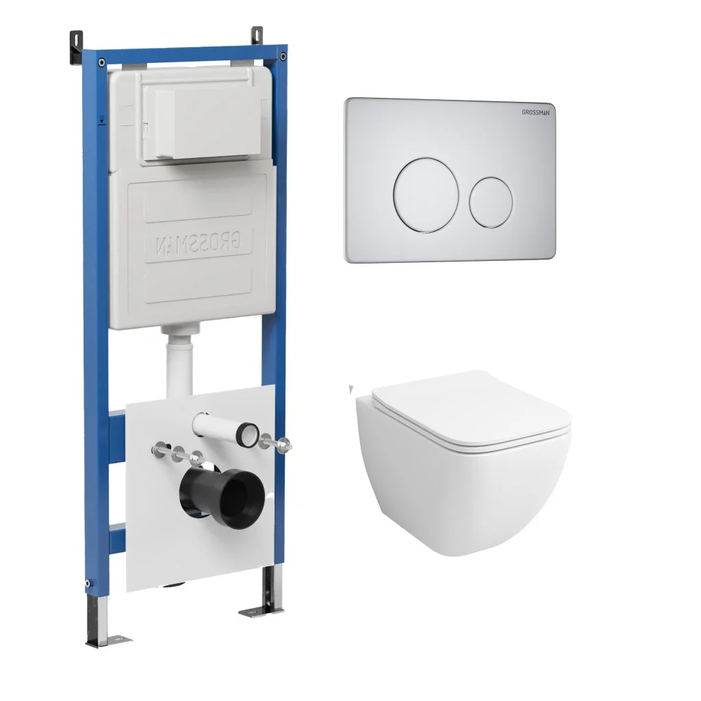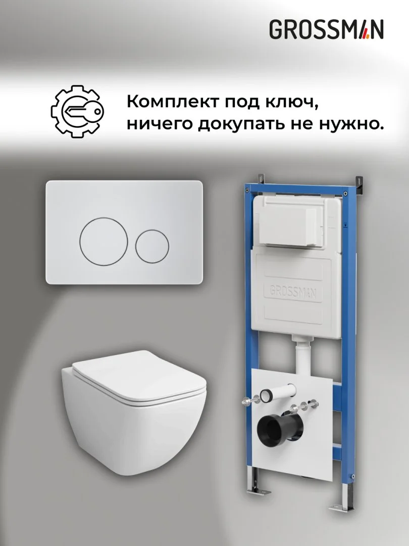 Комплект инсталляции GROSSMAN 900.K31.01.000 с клавишей смыва 700.K31.05.01M.01M белый матовый и унитазом GROSSMAN GR-4447S арт.97.4447S.05.01M