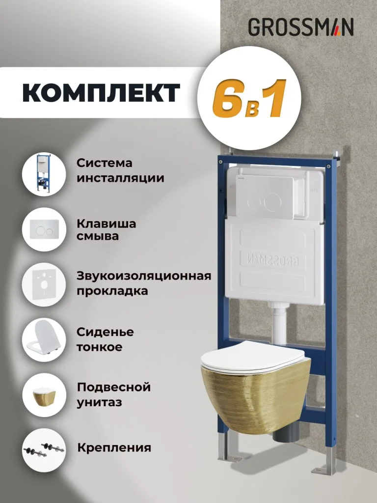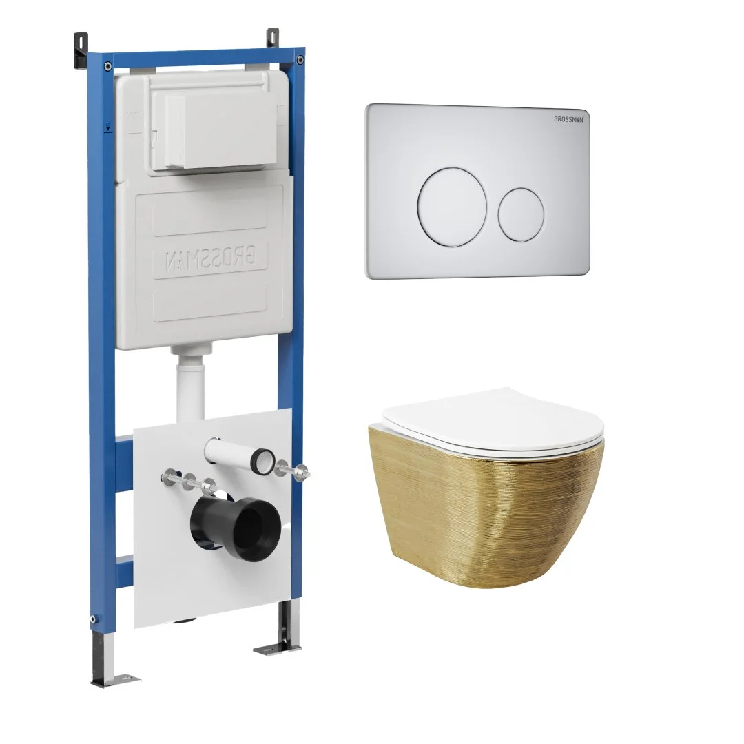 Комплект инсталляции GROSSMAN 900.K31.01.000 с клавишей смыва 700.K31.05.01M.01M белый матовый и унитазом GROSSMAN GR-4455GWS арт.97.4455GWS.05.01M