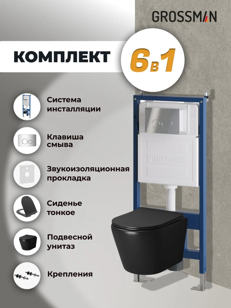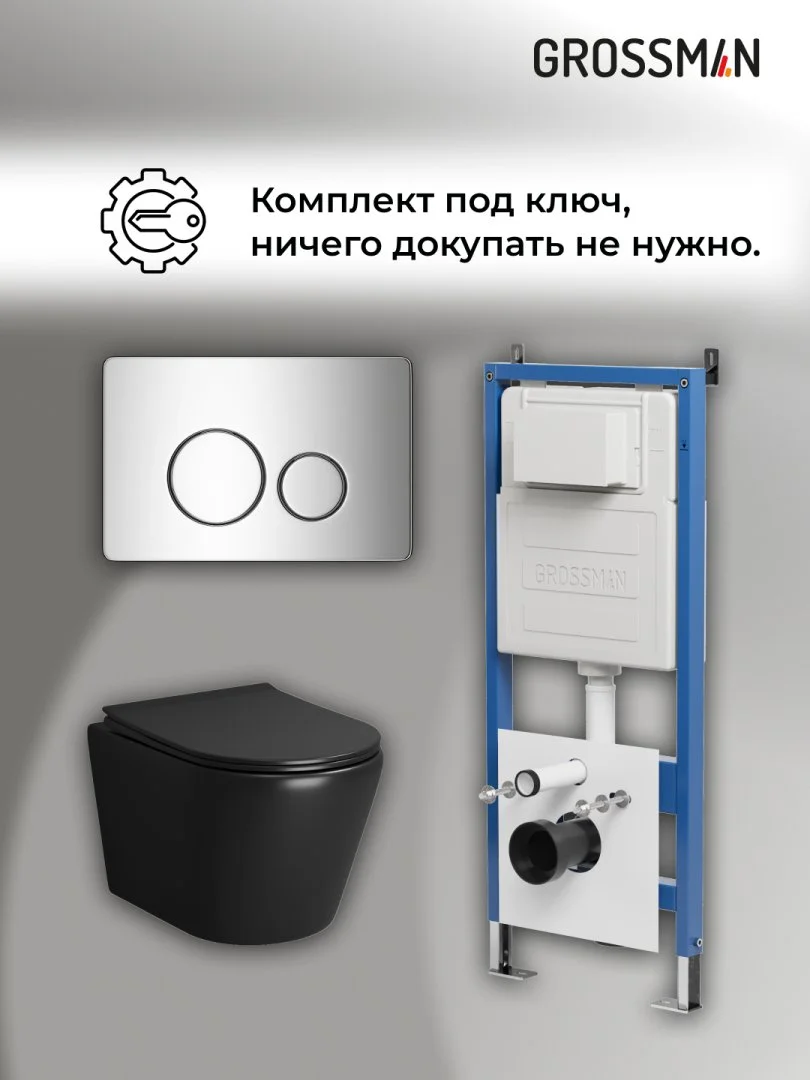 Комплект инсталляции GROSSMAN 900.K31.01.000 с клавишей смыва 700.K31.05.10M.10M хром и унитазом GROSSMAN GR-4478BMS арт.97.4478BMS.05.10M
