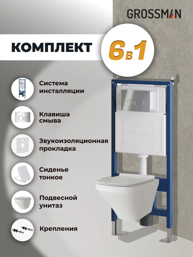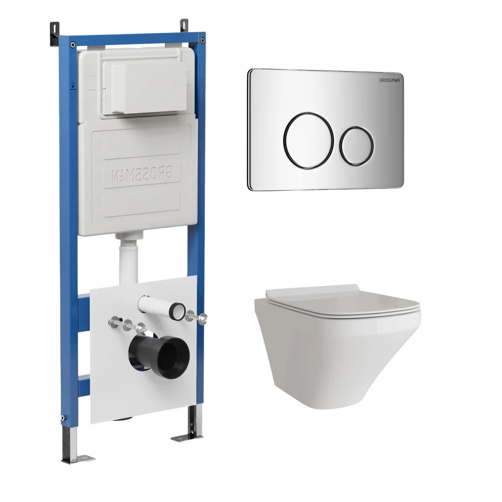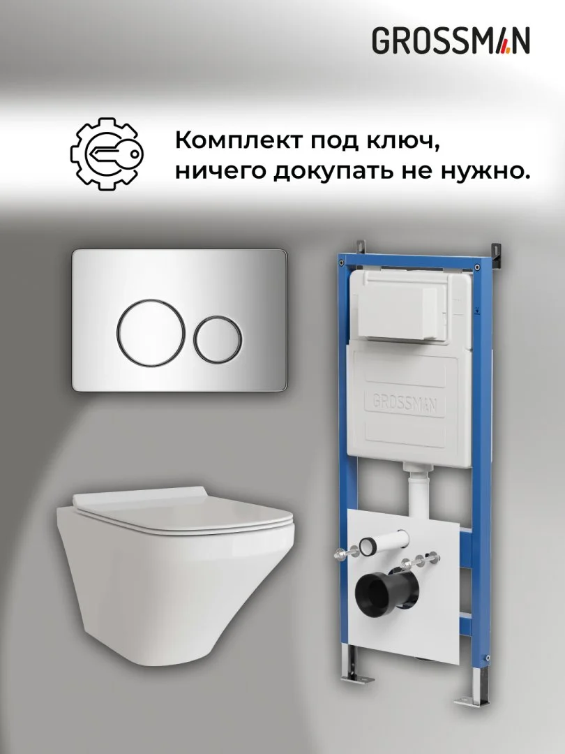 Комплект инсталляции GROSSMAN 900.K31.01.000 с клавишей смыва 700.K31.05.10M.10M хром и унитазом GROSSMAN GR-4440S арт.97.4440S.05.10M