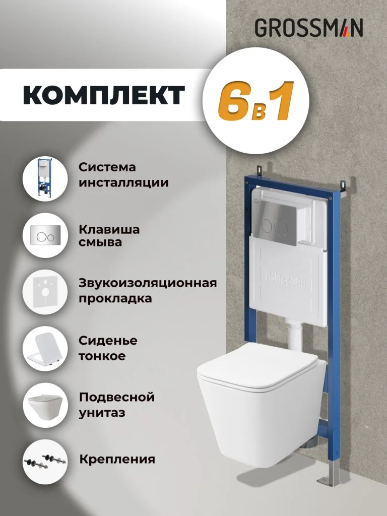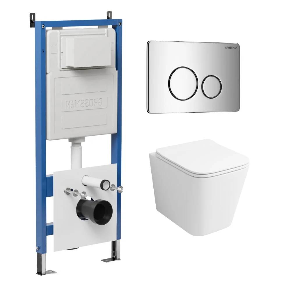 Комплект инсталляции GROSSMAN 900.K31.01.000 с клавишей смыва 700.K31.05.10M.10M хром и унитазом GROSSMAN GR-4441S арт.97.4441S.05.10M