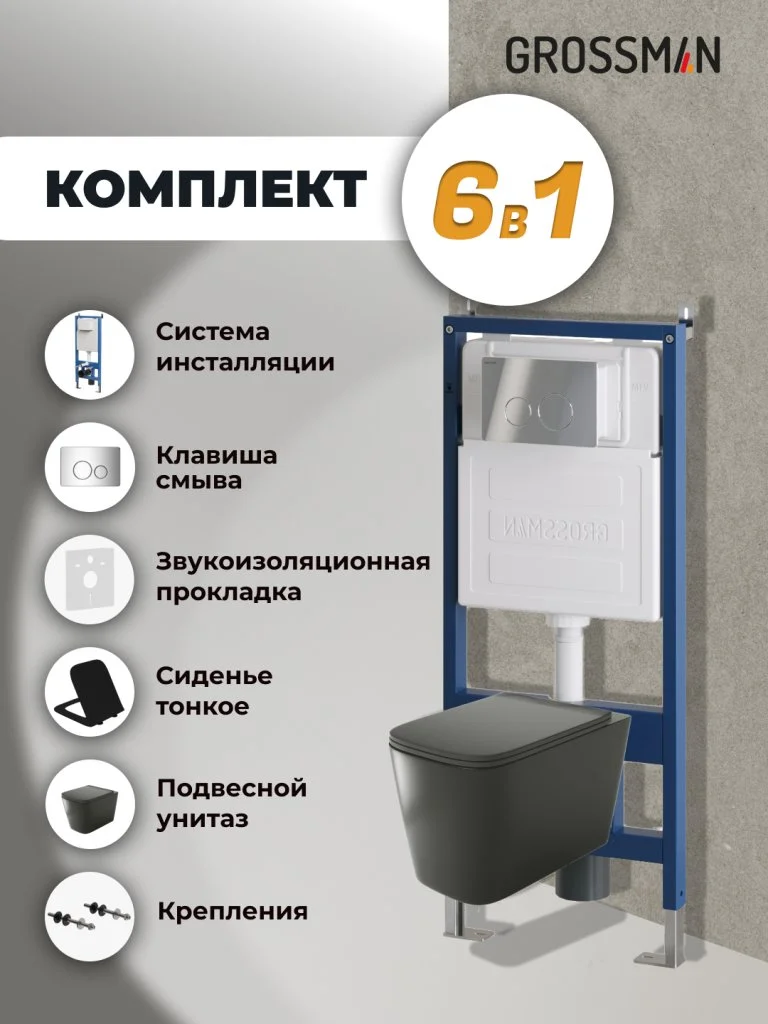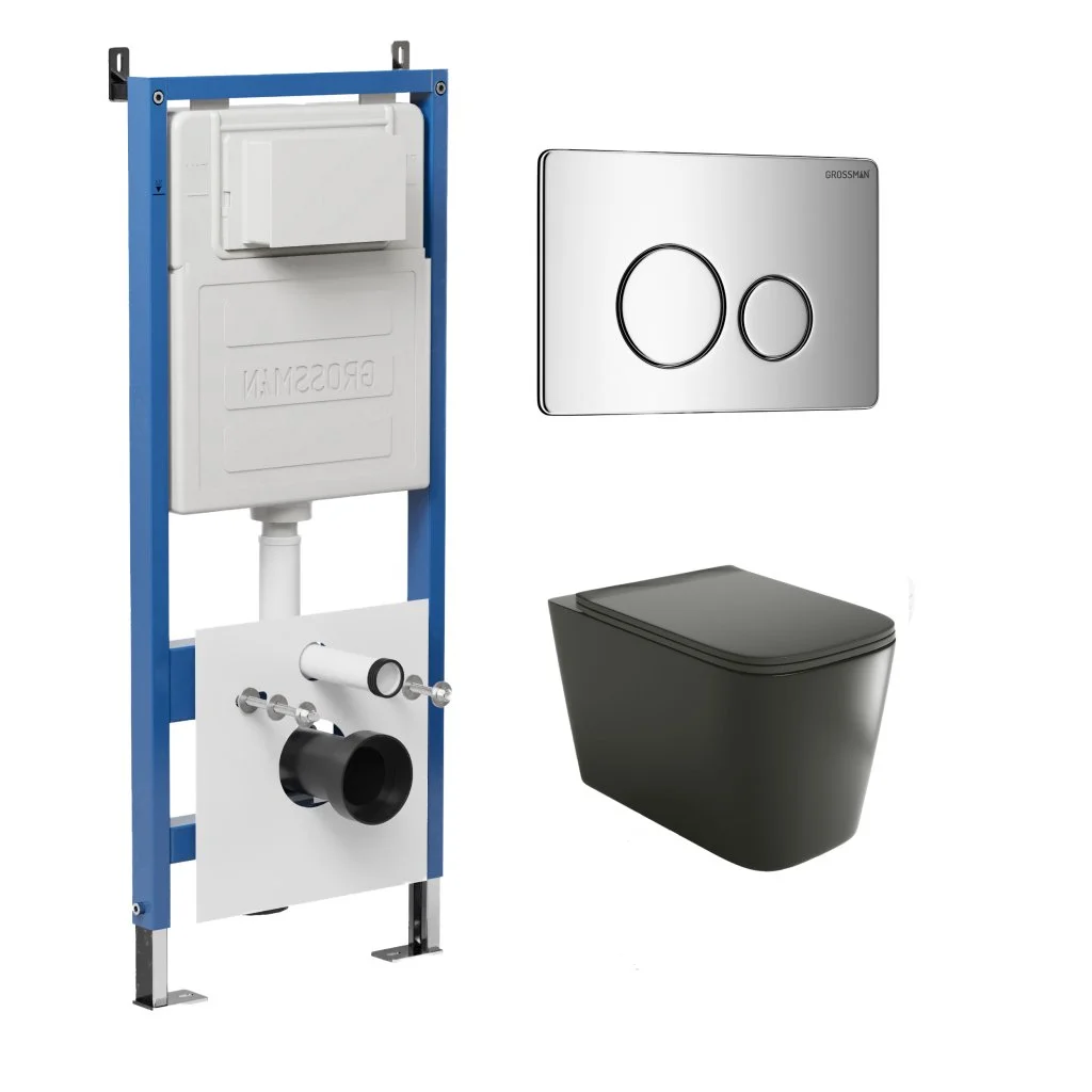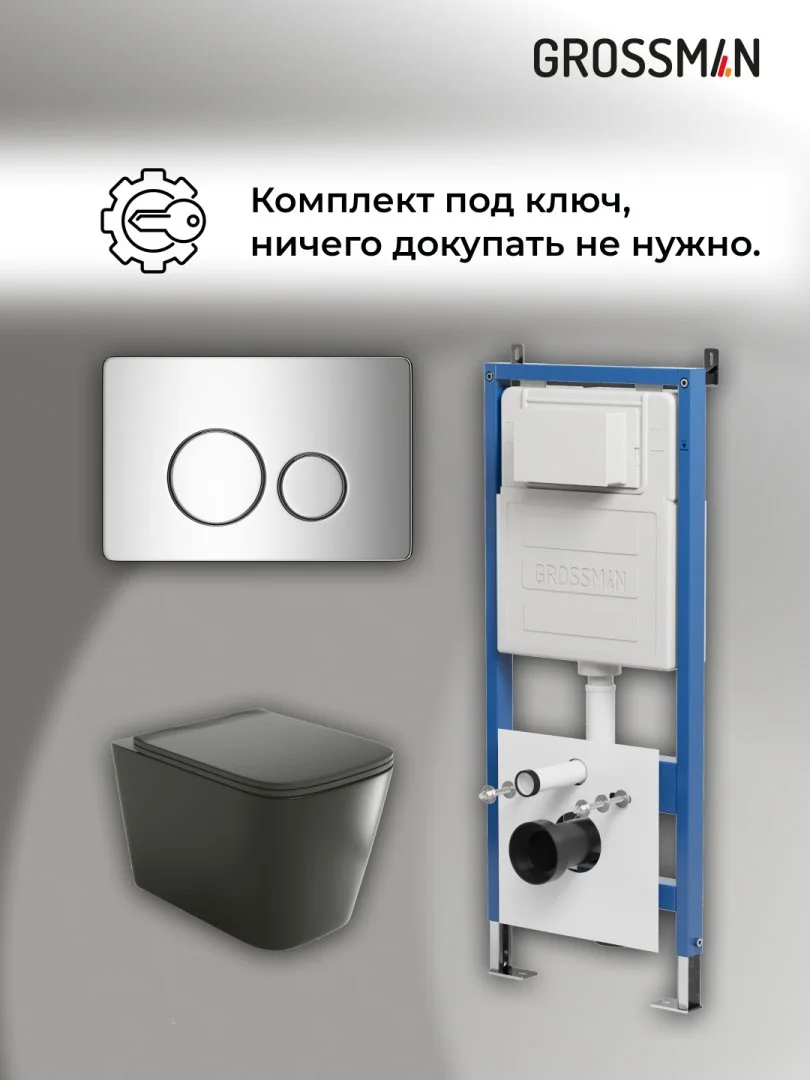 Комплект инсталляции GROSSMAN 900.K31.01.000 с клавишей смыва 700.K31.05.10M.10M хром и унитазом GROSSMAN GR-4441BMS арт.97.4441BMS.05.10M