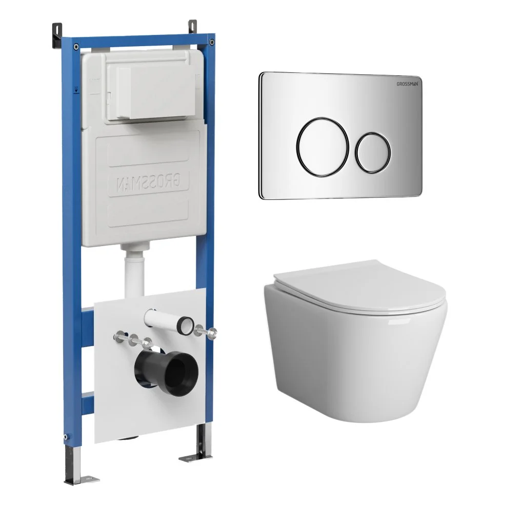 Комплект инсталляции GROSSMAN 900.K31.01.000 с клавишей смыва 700.K31.05.10M.10M хром и унитазом GROSSMAN GR-4478S арт.97.4478S.05.10M