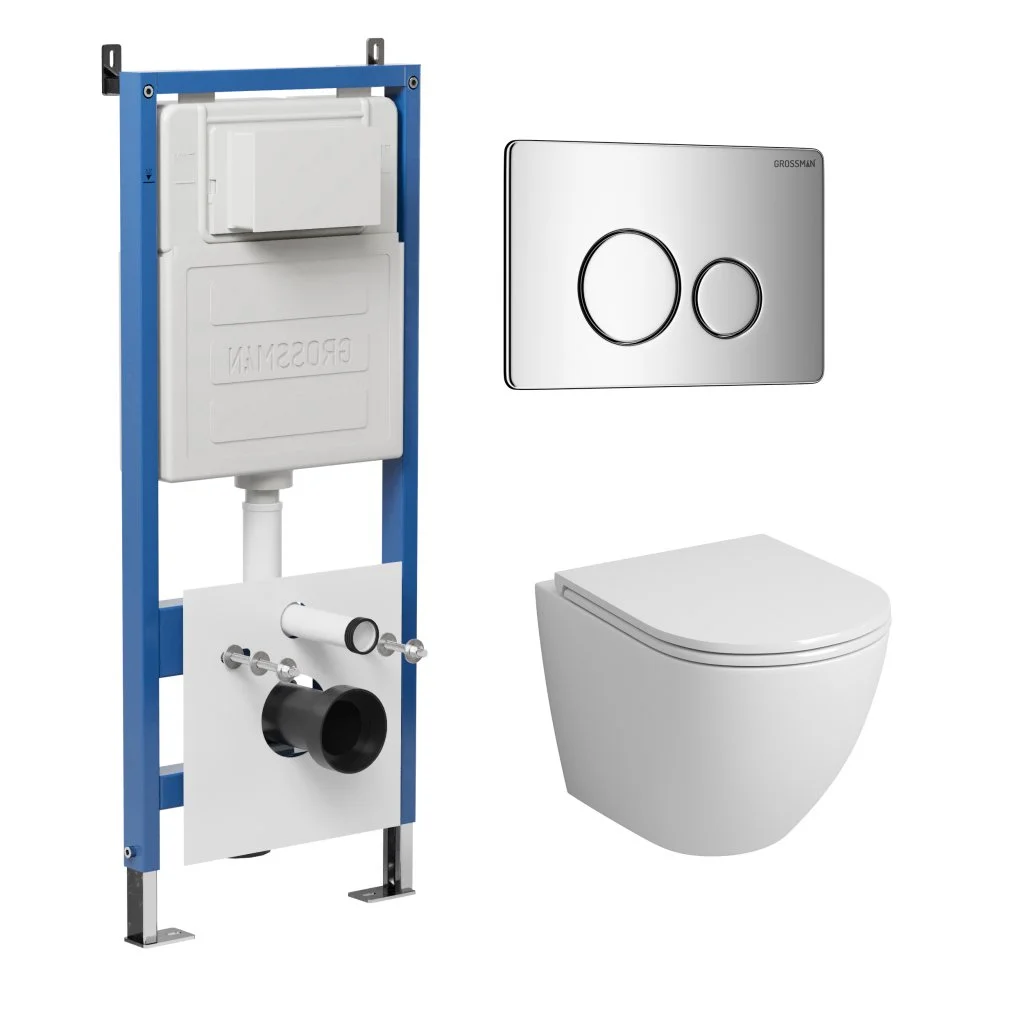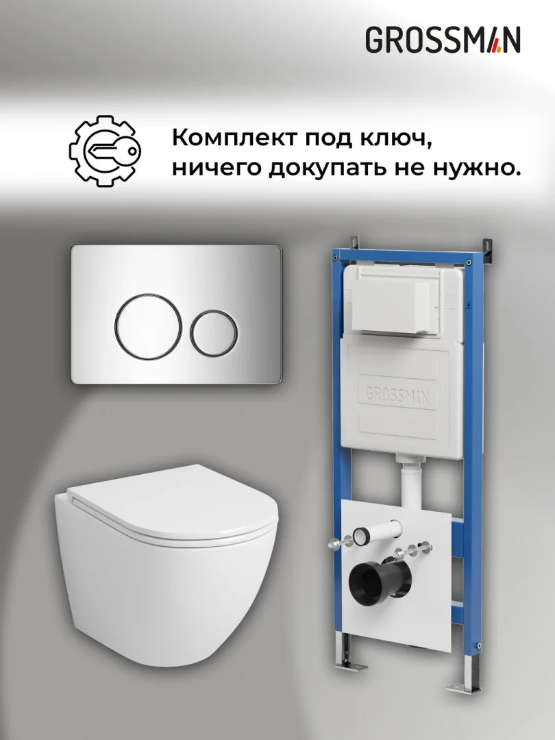 Комплект инсталляции GROSSMAN 900.K31.01.000 с клавишей смыва 700.K31.05.10M.10M хром и унитазом GROSSMAN GR-4455SQ арт.97.4455SQ.05.10M