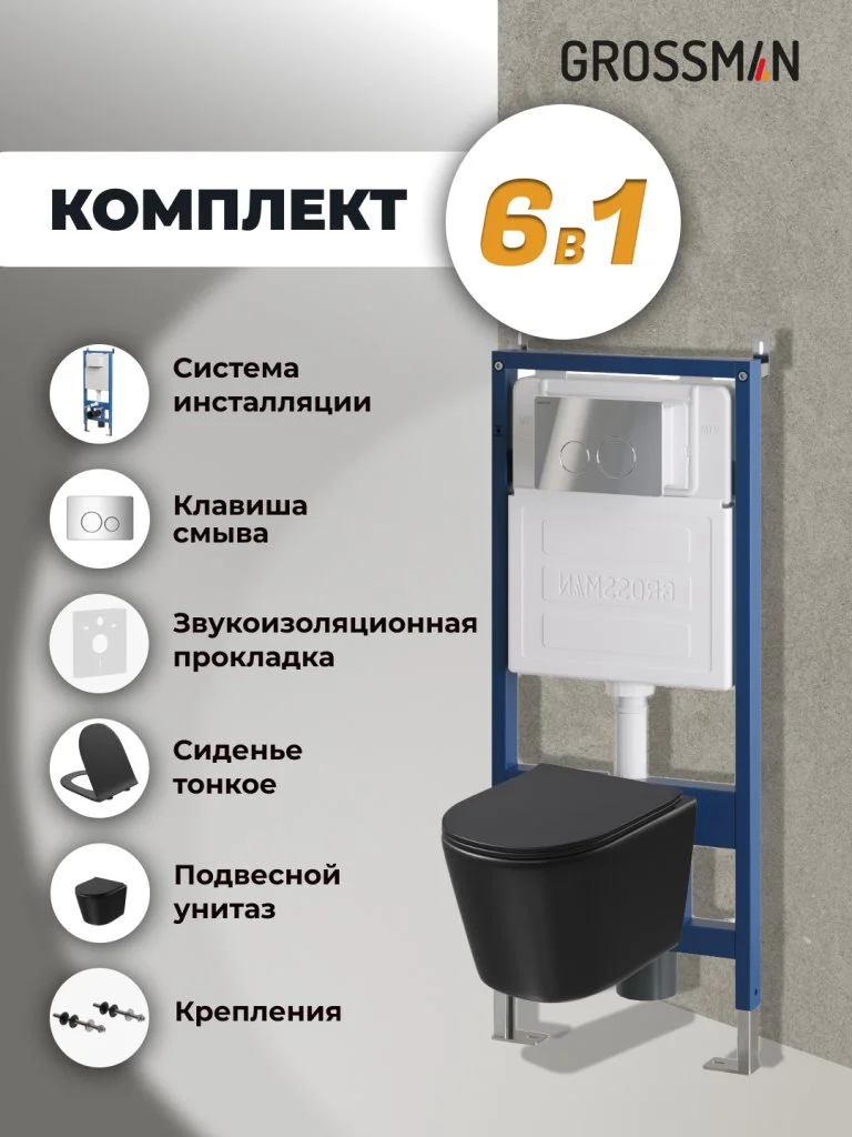 Комплект инсталляции GROSSMAN 900.K31.01.000 с клавишей смыва 700.K31.05.10M.10M хром и унитазом GROSSMAN GR-4477BMSQ арт.97.4477BMSQ.05.10M