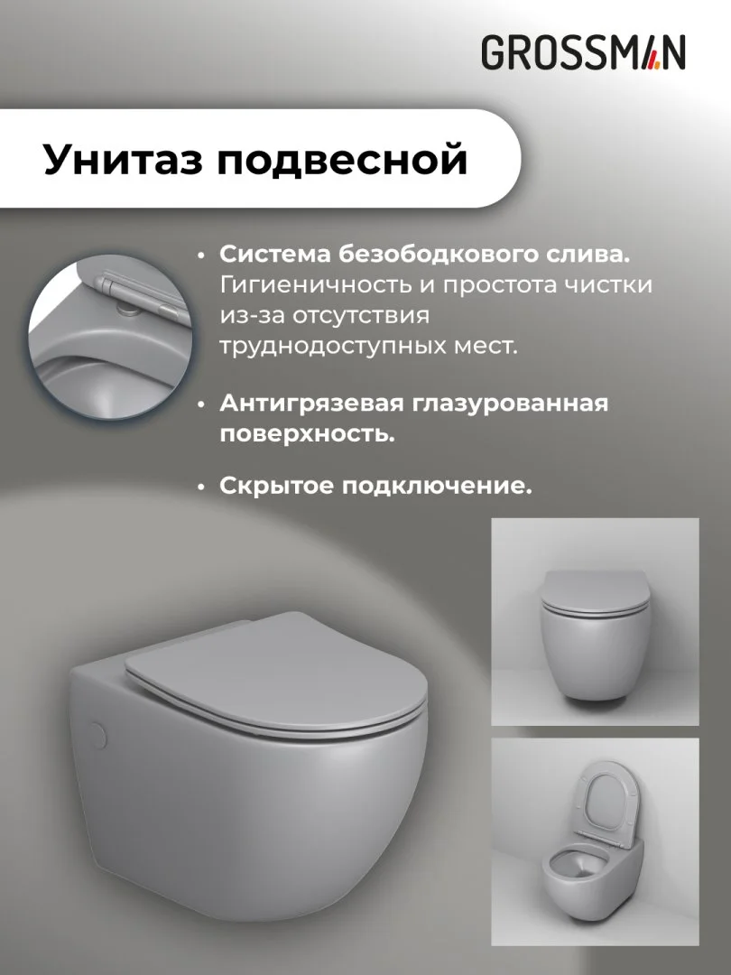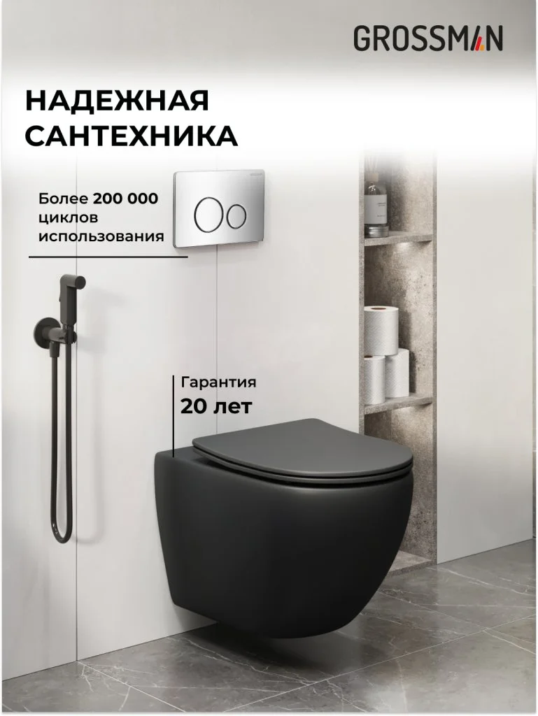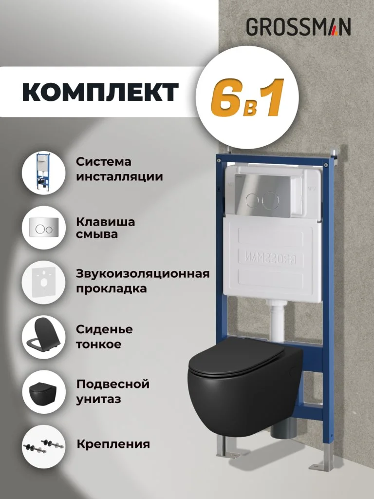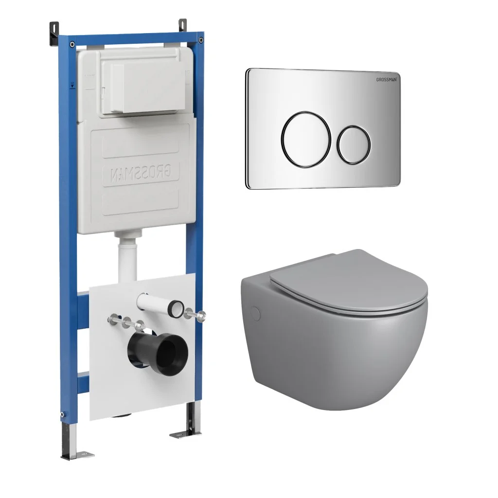 Комплект инсталляции GROSSMAN 900.K31.01.000 с клавишей смыва 700.K31.05.10M.10M хром и унитазом GROSSMAN GR-4411BMS арт.97.4411BMS.05.10M