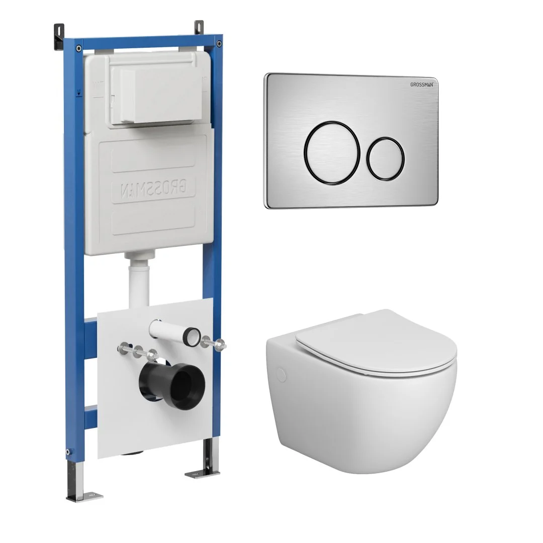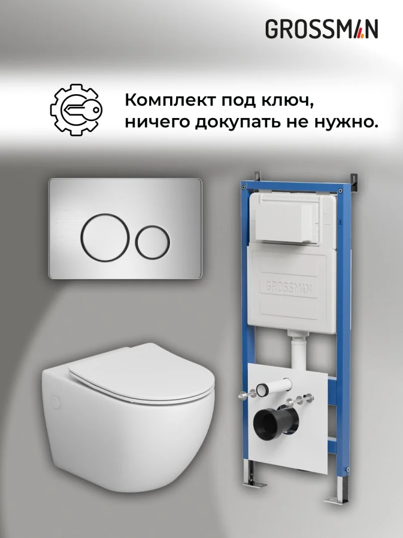 Комплект инсталляции GROSSMAN 900.K31.01.000 с клавишей смыва 700.K31.05.12M.12M хром сатиновый и унитазом GROSSMAN GR-4411SQ арт.97.4411SQ.05.12M