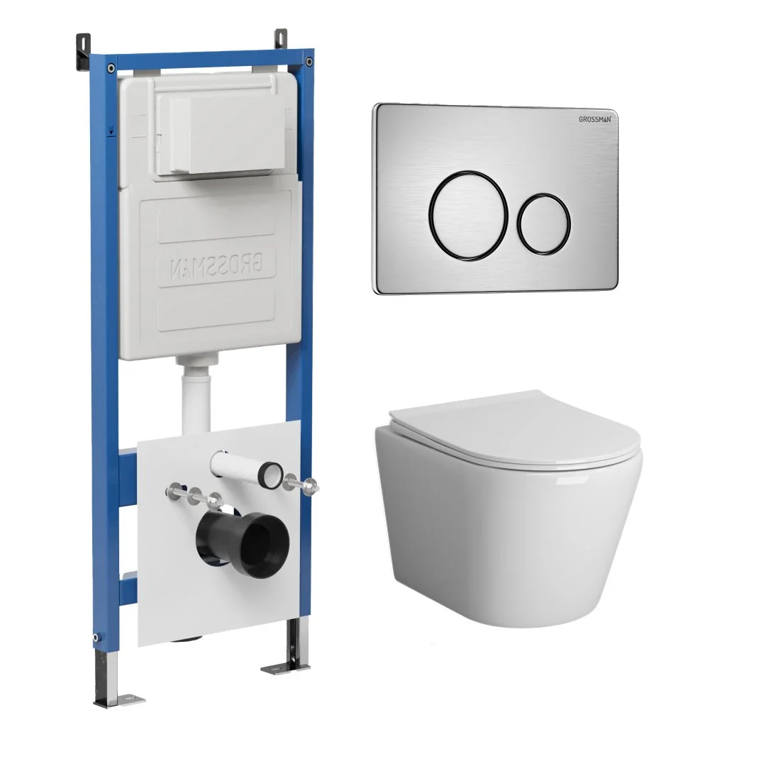 Комплект инсталляции GROSSMAN 900.K31.01.000 с клавишей смыва 700.K31.05.12M.12M хром сатиновый и унитазом GROSSMAN GR-4478S арт.97.4478S.05.12M